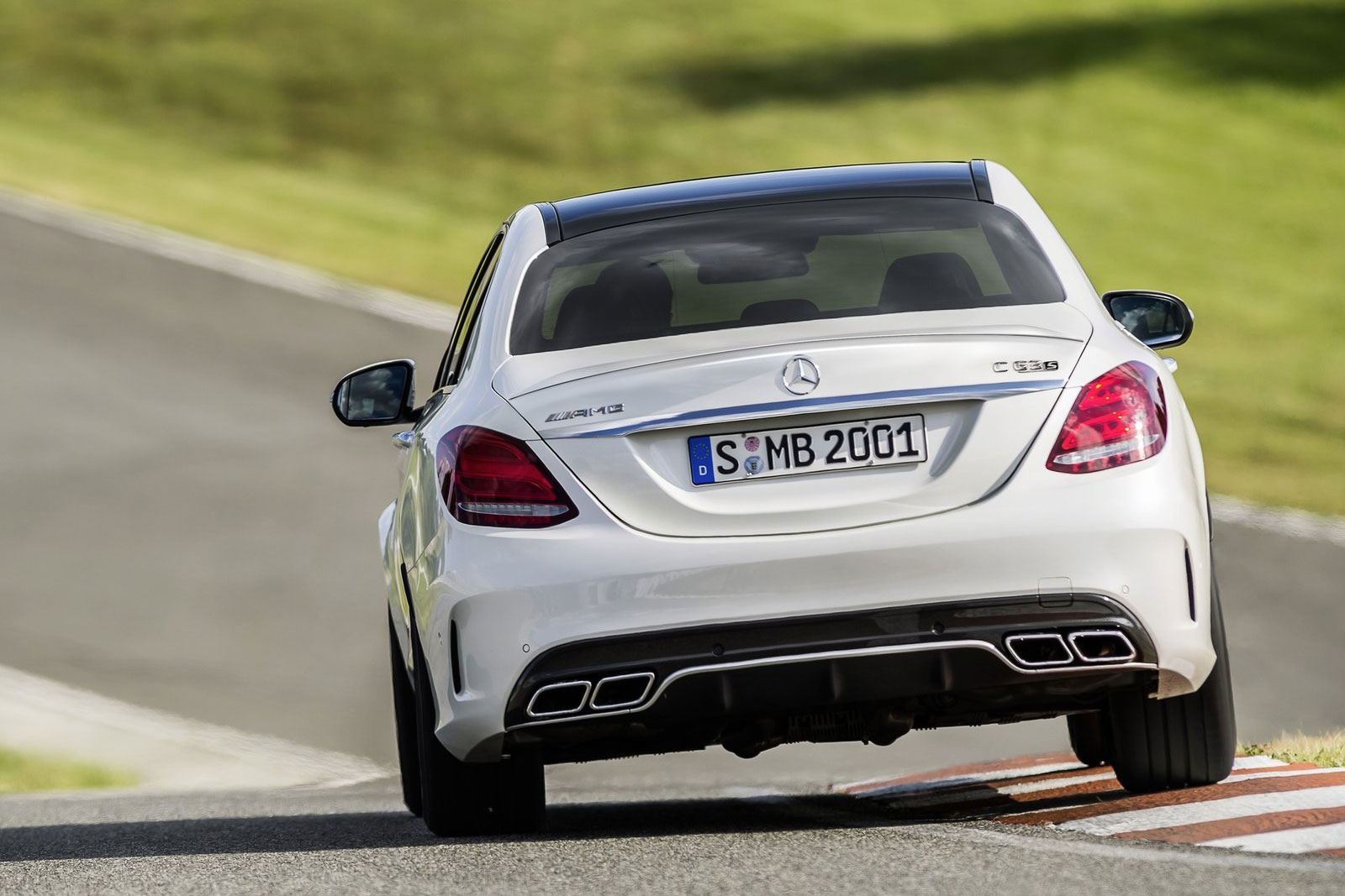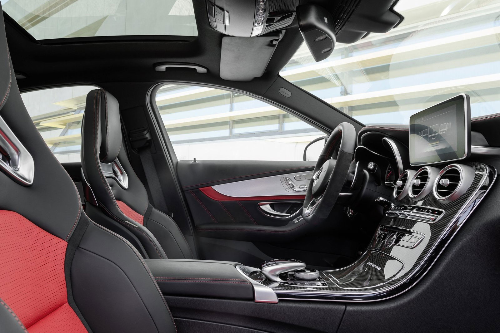 Damit Fahrer und Beifahrer die Leistung im Überfluss auch so richtig genießen können, wurde auch im Innenraum noch einmal Hand angelegt. Die Sportsitze sind serienmäßig, optional gibt es die AMG-Performance-Sitzanlage mit verbessertem Seitenhalt und tieferer Sitzposition. Dreispeichen-Sportlenkrad, zusätzliche Lederelemente und Armaturen in Carbonoptik sorgen für den entsprechend sportlichen Touch. Die Kommandozentrale in der Mittelkonsole ermöglicht die Steuerung des dreistufigen Fahrwerks (AMG Ride Control, Serie) und des AMG Dynamic Select mit verschiedenen Fahrmodi. Der sogenannte „Race“-Modus ist dem S-AMG vorbehalten. Dieser verfügt neben 19-Zoll-Felgen auch über ein elektronisches Sperrdifferential an der Hinterachse, das feinfühliger regeln soll als die mechanische Sperre im C 63 AMG. Auf die Ohren kriegen die Passagiere auf Wunsch mit der steuerbaren Performance-Abgasanlage.