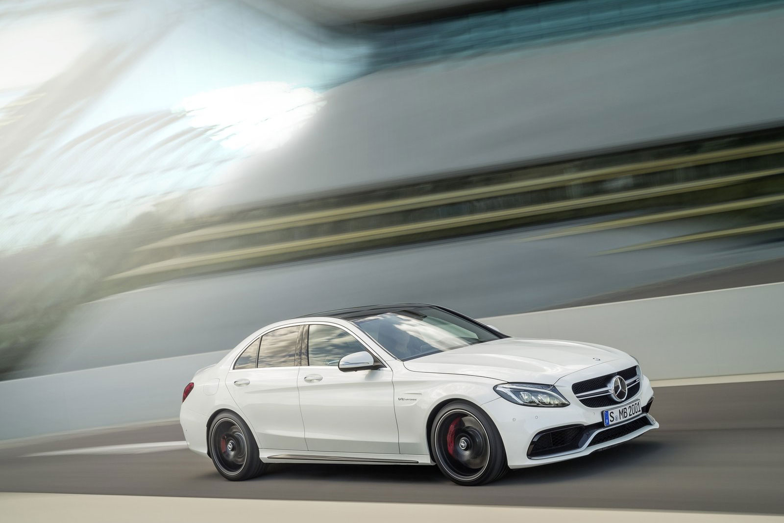 {werbung2}An der neuen C-Klasse wurden einige Umbaumaßnahmen fällig, um den V8 unter der Motorhaube unterzubringen: Der Vorderbau musste trotz der kompakten Bauweise des V8 mit innenliegenden Ladern um ganze 5,4 Zentimeter verlängert werden. Um die Lader vor Überhitzung zu schützen, wird außerdem ein spezielles Kühlverfahren angewendet. Die Kraftübertragung übernimmt die bekannte AMG-Speedshift Automatik mit sieben Vorwärtsgängen. Allerdings soll die Gedenksekunde, mit der die Speedshift-Box bislang auf direkte Schaltbefehle des Fahrers reagierte und deshalb bemängelt wurde, ausgemerzt worden sein.