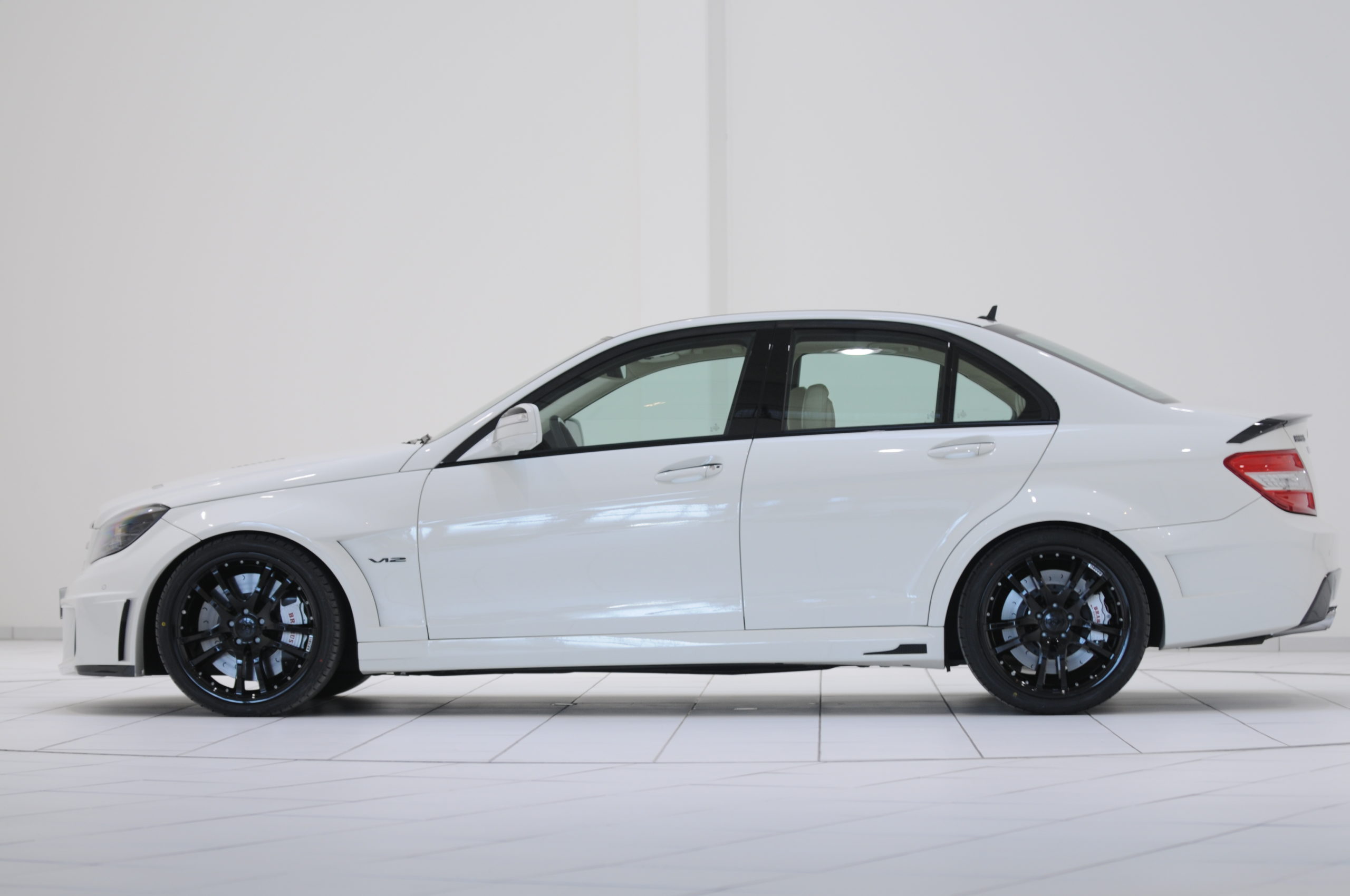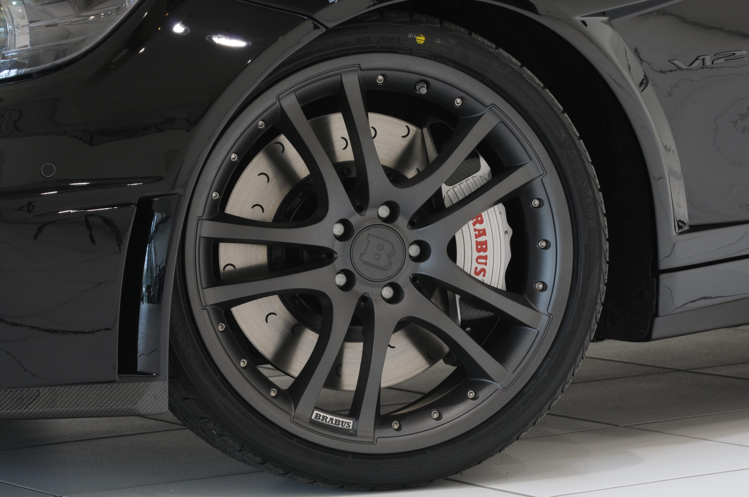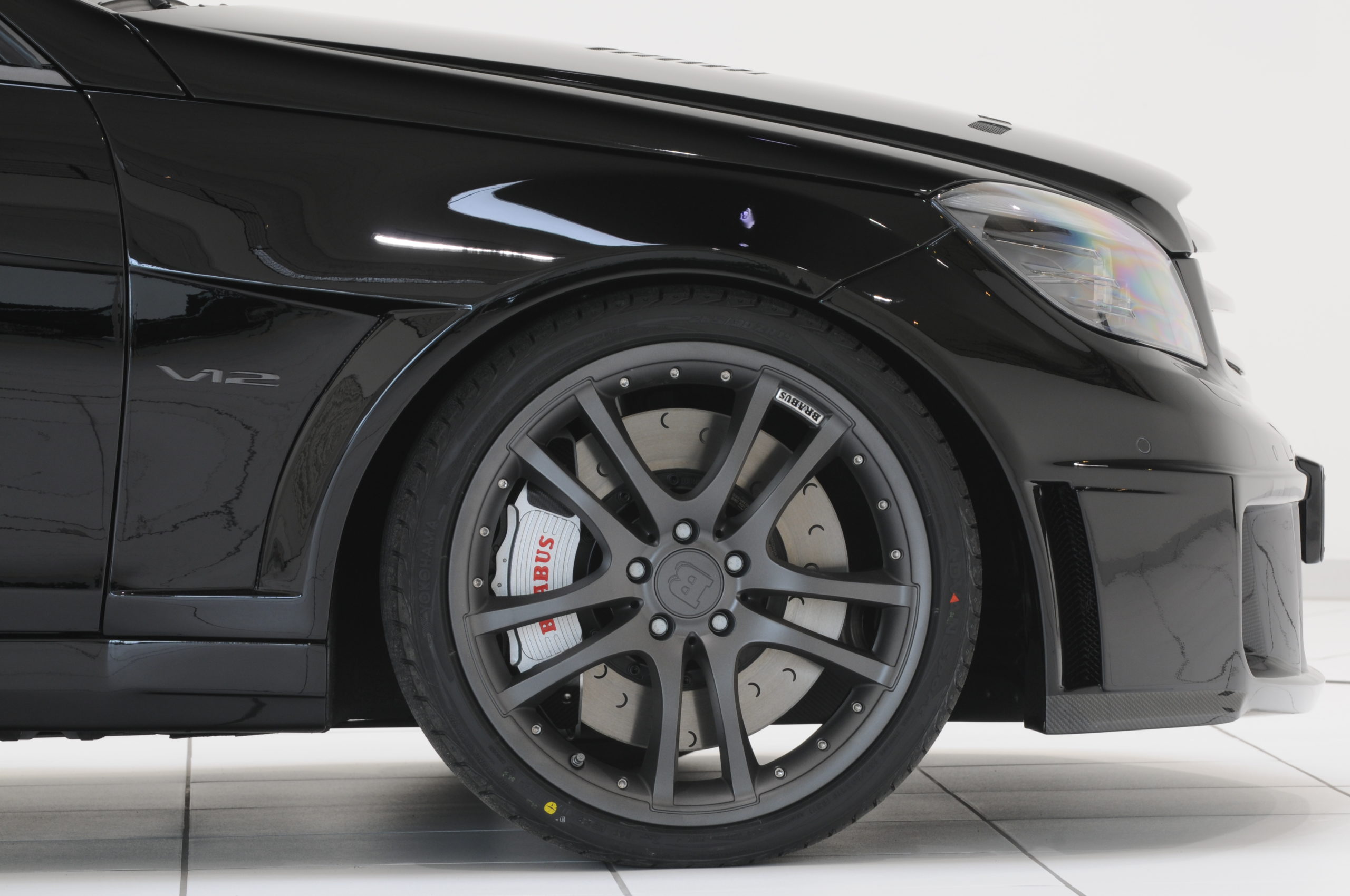 [adrotate group=“1″]Der Auftritt des Geschosses wird zusätzlich durch die aus Aluminium angefertigten Kotflügelverbreiterungen an Vorder- und Hinterachse geprägt. Sie machen die C-Klasse Karosserie um insgesamt sechs Zentimeter breiter. Damit ist auch Platz für besonders breite Brabus-Alus (19 Zoll) sowie passende Hochleistungsreifen (265/30 ZR vorn, 285/30 ZR hinten). Selbstverständlich wurde auch das Fahrwerk speziell für die Kraft und das Gewicht des V12 Biturbo Motors entwickelt. Das höhenverstellbare Gewindefahrwerk mit jeweils zehnfach in Zug- und Druckstufe verstellbaren Gasdruckdämpfern ist sportlich-komfortabel abgestimmt und soll für sicheres Fahrverhalten in jeder Situation sorgen. Sportstabilisatoren reduzieren die Seitenneigung bei schneller Kurvenfahrt auf ein Minimum. Die Hochleistungsbremsanlage mit 12-Kolben-Aluminium-Festsätteln und innenbelüfteten, genuteten 380 x 37 Millimeter Bremsscheiben an der Vorderachse sowie 360 x 28 Millimeter Scheiben und 6-Kolben-Aluminium-Festsätteln hinten dürfte auch höchsten Beanspruchungen problemlos gewachsen sein.