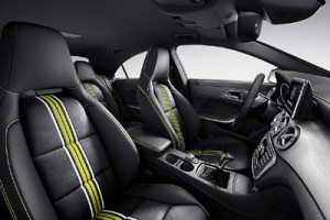 Exklusiv dem Sondermodell vorbehalten ist das Interieur „Neon Art“. Hier ist die Polsterung der Sportsitze in Leder und Mikrofaser Dinamica schwarz ausgeführt, gelbe Ziernähte sorgen für einen besonderen Kontrast. Die Instrumententafel und die Bordkanten sind in Ledernachbildung Artico mit gelben Ziernähten in Wrap-around-Optik – was auch immer das heißen soll – gestaltet. Helle Zierelemente in Aluminium mit Längsschliff und ein unten abgeflachtes Multifunktions-Sportlenkrad in Leder Nappa im Drei-Speichen-Design mit Perforation im Griffbereich runden den besonderen Auftritt des Cockpits ab.