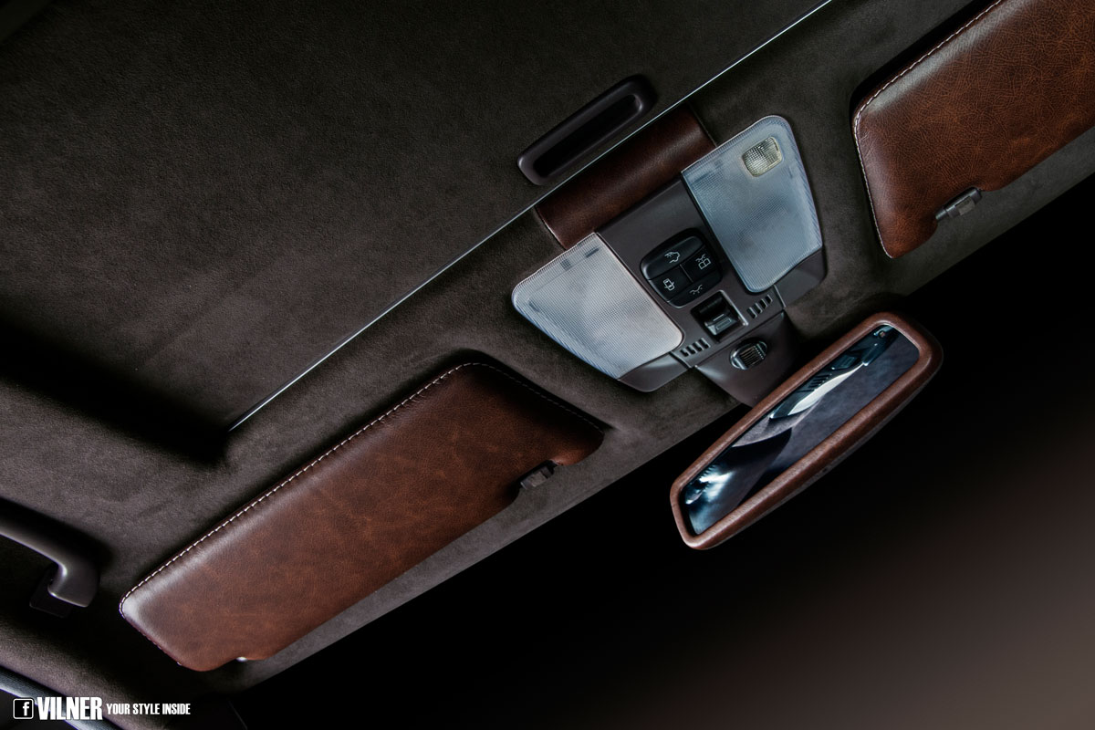 Während der Allradantrieb bei aktuellen AMG Varianten ohne Aufwand dazu buchbar ist, bedurfte es im Jahre 2001 noch eines expliziten Kundenwunsches, damit die Antriebstechnik in Kleinstserien-Format verbaut wurde. Dem Seltenheitsgrad des 55 AMG 4MATIC angemessen entwarf man bei Vilner ein komplett neues Interieur, das sich aus „smokey cognac“ Patina Leder, braun perforiertem Alcantara und braun eingefärbten Carbon-Zierteilen zusammen setzt.