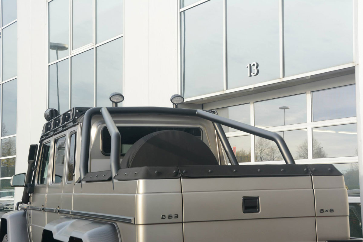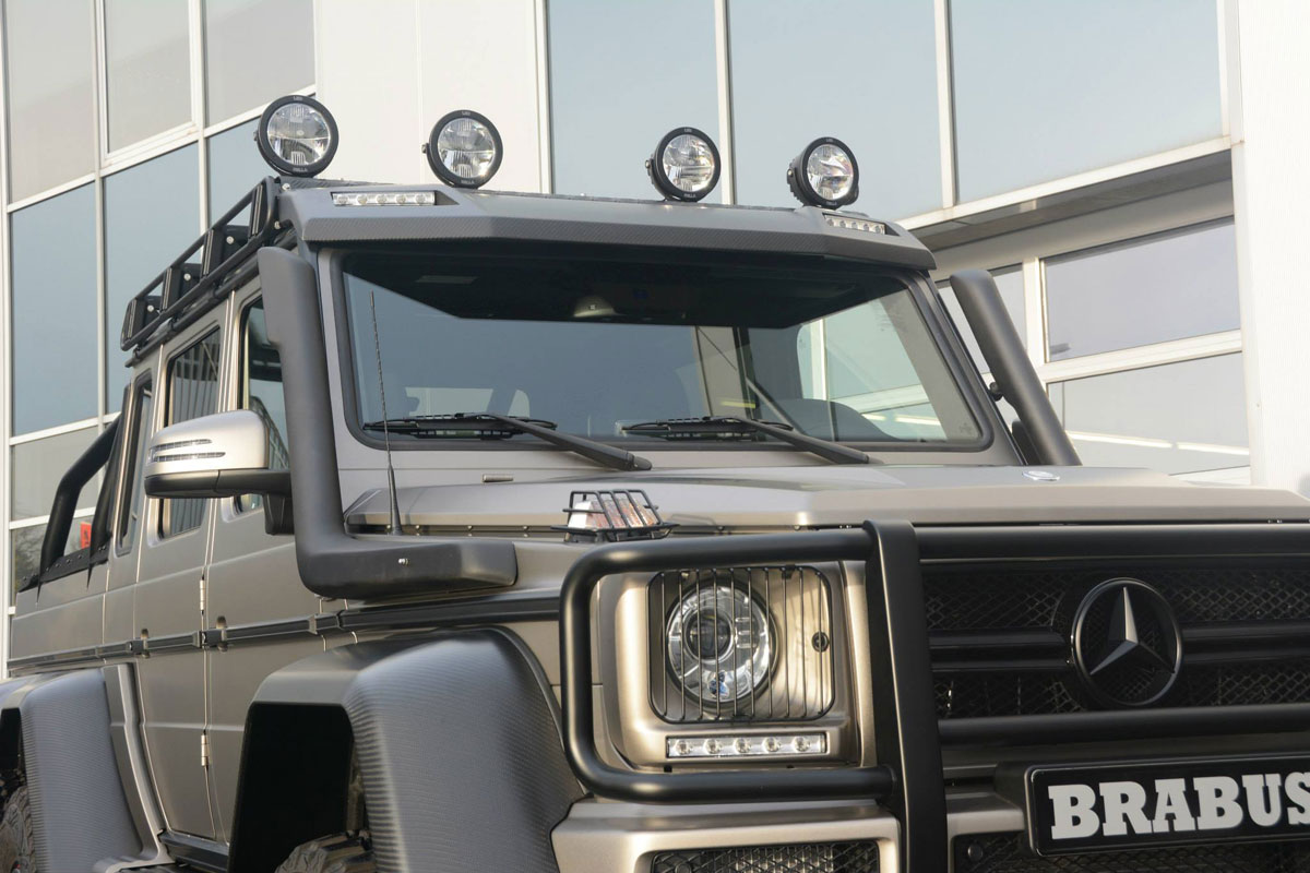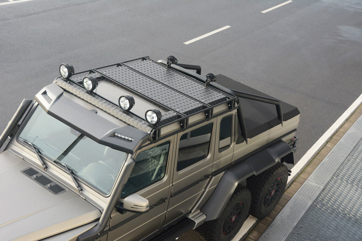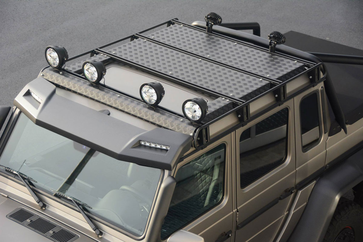 Darunter arbeitet ein stark überarbeiteter V8-Motor, der nun dank neuer Kolben, Pleuel, Pleuellager, Kurbelwelle, Kurbeln, Zylinderkopf und diverser weiterer Neuteile eine Leistung von 840 PS auf die Matte stemmt. Das Drehmoment wurde bei 1.000 Nm eingebremst. Natürlich verbaut der Tuner auch eine neue Abgasanlage und spielt eine neue Steuersoftware auf. Die Fahrleistungen dürften sich allerdings auch nach diesen Eingriffen nicht eklatant verbessern. Hier machen dem Monster seine montierten 37-Zoll-Geländereifen eben so einen Strich durch die Rechnung wie sein Gewicht von 3,75 Tonnen.