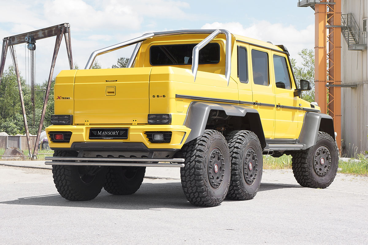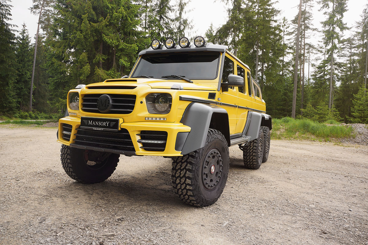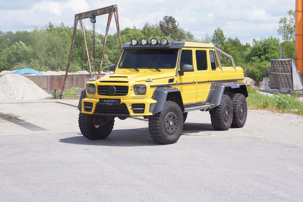 Oh nein, auch viele Monate nach der Präsentation des gewaltigen Mercedes G 63 AMG 6X6 ist der Anblick dieses Monstrums immer noch beeindruckend. Und mit einem 5,5 Liter großen Biturbo unter der Haube (544 PS) ist der Trumm dazu auch noch ausreichend Motorisiert. Aber das liegt natürlich im Auge des Betrachters. Und so hatte sich bereits im Mai 2014 auch Tuner Mansory daran gemacht, dem großen, dreiachsigen Mercedes-Pick Up auf die Sprünge zu helfen – optisch und leistungsseitig. Nun wurde ein weiteres getuntes Exemplar fertig gestellt (dieses mal in Gelb). Dieses Tatsache nutzt Mansory natürlich, um sein Tuning-Programm für den 6X6 erneut ins Gedächtnis zu rufen.