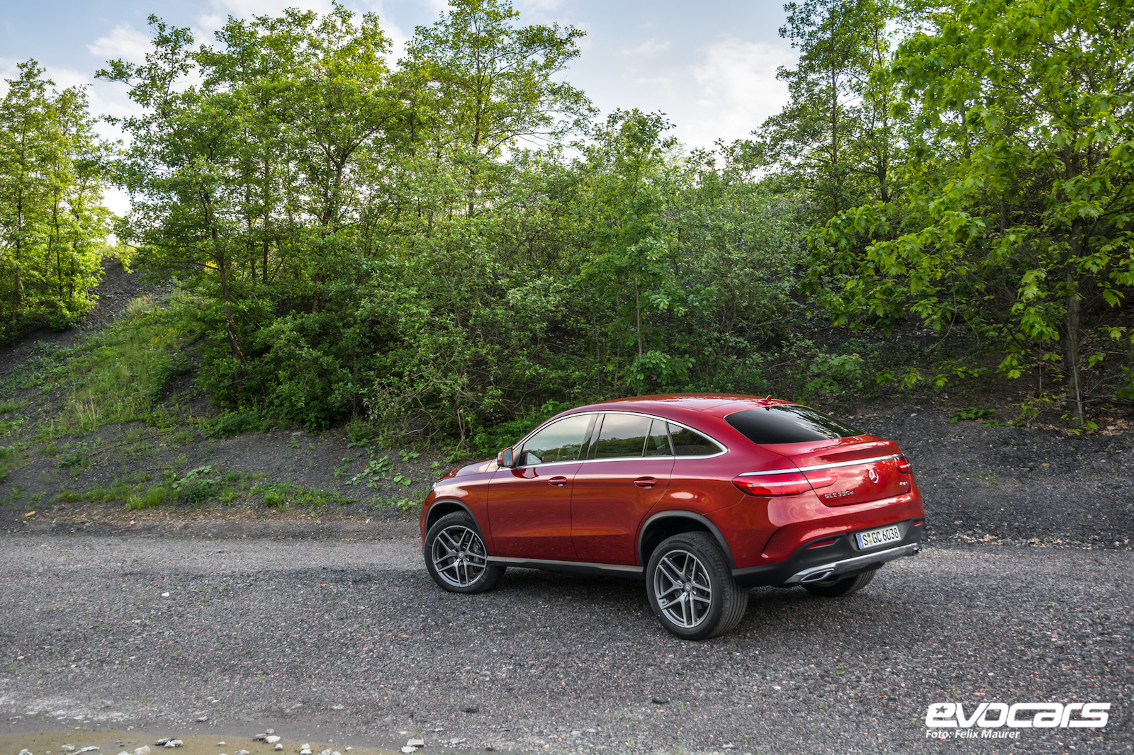Und dann stand es da, das „Coupé“ mit dem fetten Stern im Kühlergrill. Und der Faszinationsnerv sprang sofort drauf an. Es ist ja ohnehin schon alles überdimensioniert, doch die schiere Höhe wirkt durch die Coupéform viel extremer als beim ebenso hohen GLE ohne Coupé. Hinzu kommt im Falle unseres Testwagens das AMG-Optikpaket (zu 3.451 Euro) samt 315er-Reifen auf 21-Zoll-Felgen an der Hinterachse. Für sowas hätte vor zehn Jahren jeder Wörthersee-Teilnehmer seine Mutter verkauft.