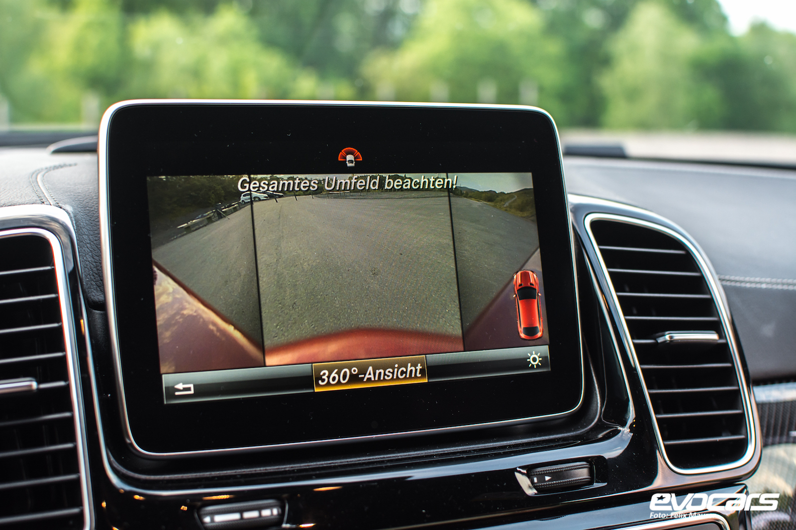 Eine Daimler AG macht keine Kompromisse. Dann gibt’s halt Kameras, in unserem Falle vier mehr oder weniger hochauflösende an der Zahl (im Park-Paket für 2.332 Euro), sodass man sich tatsächlich fragt, wofür sie noch Fensterscheiben eingebaut haben. Vielleicht hatte es optische Gründe. So können wir nach vorne, zur Seite, nach hinten, sogar von oben auf den GLE schauen und das hat schon wieder was. Thema Giraffenblick und so. Gut, bis man sich während der Fahrt mittels Dreh-Drücksteller durch die verschiedensten Kamerapositionen gewurschtelt hat, sind schon drei Rollatorfahrer zwischen den Achsen gelandet. Aber auch das hätte man gar nicht gemerkt, die Dämpferkennlinie in Comfort mildert sämtliche Unwegbarkeiten souverän ab.