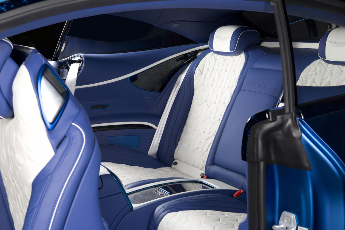 Ans äußere Erscheinungsbild der Diamond Edition angepasst präsentiert sich selbstverständlich auch der Innenraum. Seien es die von Hand genähten Leder-Sitze, das neue Lenkrad, die Alu-Pedalerie oder die beleuchteten Einstiegsleisten und Einlagen in Carbon oder Holz – nahezu jeder Wunsch des Kunden kann erfüllt werden.