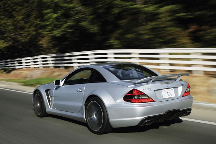 [adrotate group=“1″]Im Vergleich zum Serienmodell SL65 AMG haben die AMG-Mannen noch 250 Kilogramm überflüssiges Fett gefunden, die Power des Sechsliter-V12-Bi-Turbo unter der Haube wurde von 612 auf 670 PS gepusht und das Drehmoment muss bei 1000 Newtonmetern eingebremst werden (theoretisch sind 1200 Nm drin). Außerdem verpasste AMG dem SL65 AMG Black Series jede Menge Hightech-Zutaten wie ein festes Dach aus Kohlefaser-Verbundwerkstoff (CFK), ein neues Fahrwerk, größere Bremsen (Verbundwerkstoff, v: 390 mm/ h: 360 mm) oder etwa die verstärkte Fünfgang-Automatik (vier Fahrstufen).