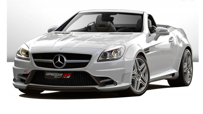Mit einer Leistung von bis zu 421 PS tritt der aktuelle Mercedes SLK an und eifert so dem großen Bruder nach. Damit der „Kleine“ auch optisch mehr auf dicke Hose machen kann, schneidert ihm der belgische Tuner Expression Motorsport sein „R Wide Body“-Kit auf den Leib.