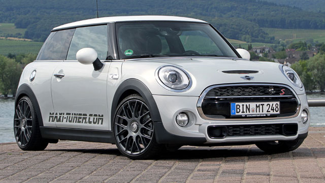 Mit 23.800 Euro steht der 192 PS und 280 Nm starke MINI Cooper S mit seinem neuen Zweiliter-Turbo unter der Haube in der Preisliste. In 6,8 Sekunden soll’s auf Tempo 100 gehen und bei 235 km/h ist Schluss. Für das Team von Maxi-Tuner sind diese Werkswerte natürlich nur eine Ausgangsbasis. Nach ihrem Eingriff geht’ im Kleinen bis rauf auf Tempo 250.