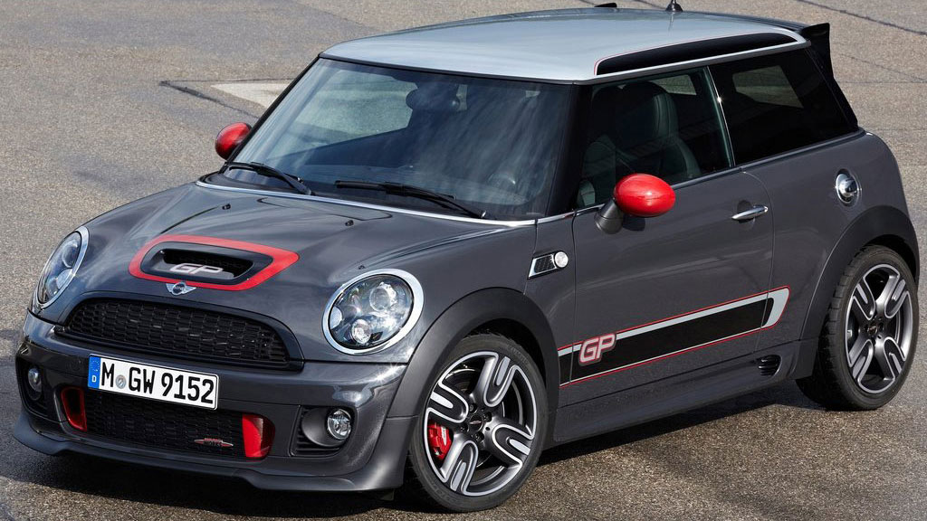 Zu haben ist das auf 2000 Exemplare limitierte Modell mit dem 1,6-Liter-Turbo unter der Haube für mindestens 36.800 Euro und glaubt man MINI, ist bereits ein Großteil der Wagen verkauft. Eigentlich kein Wunder, punktet der John Cooper Works GP doch mit einem verstellbaren Gewindefahrwerk mit einer Tieferlegung um 20 Millimeter, neuen Schürzen und Schwellern, einem Dachkantenspoiler, sowie einem auffälligen Diffusor und standfesten Bremsen mit 330er Scheiben vorn und 280ern hinten. Außerdem glänzt die Rückbank durch Abwesenheit und auf Knopfdruck gibt’s einen Drehmomentboost von 20 Newtonmeter extra.
