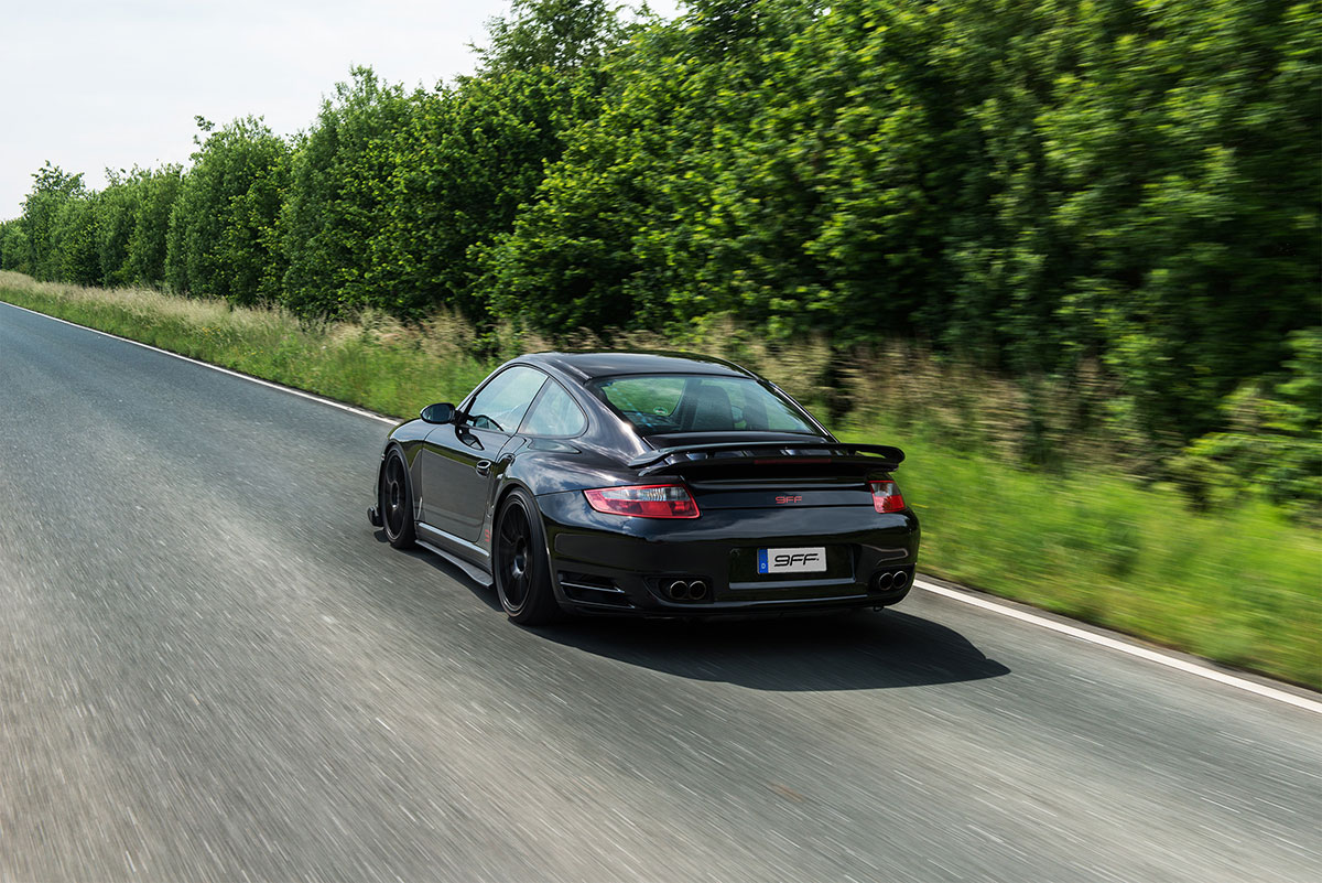 Doch 9ff wäre nicht 9ff, wenn hinter diesen Zahlen nicht bestes Engineering stecken würde. Sie resultieren aus einer Hubraumerweiterung auf 4,2 Liter, Aluminium-Schmiedekolben mit einer Verdichtung von 8,0:1, langen Schmiedepleuel, einer für hohe Drehzahlen optimierten Kurbelwelle, vier scharfen Nockenwellen sowie zwei neuer Turbolader (PT6767R). Fächerkrümmer, eine Klappenabgasanlage, ein optimiertes Steuergerät mit drei Ladedruckstufen (maximal 2,2 bar) und diverse Verstärkungen an Motor und Getriebe (Sechsgang-Handschaltung mit Vier-Scheiben-Kupplung) runden das Paket ab.