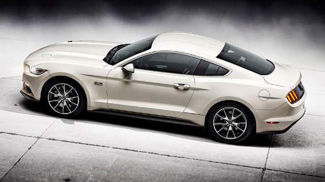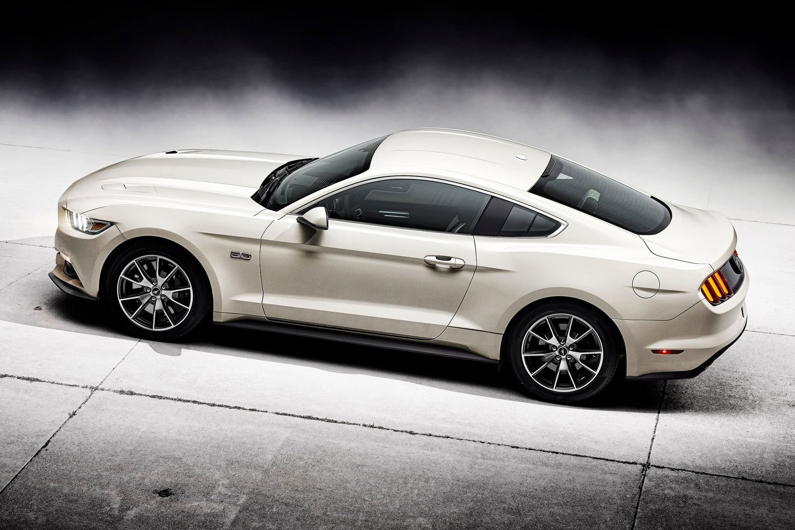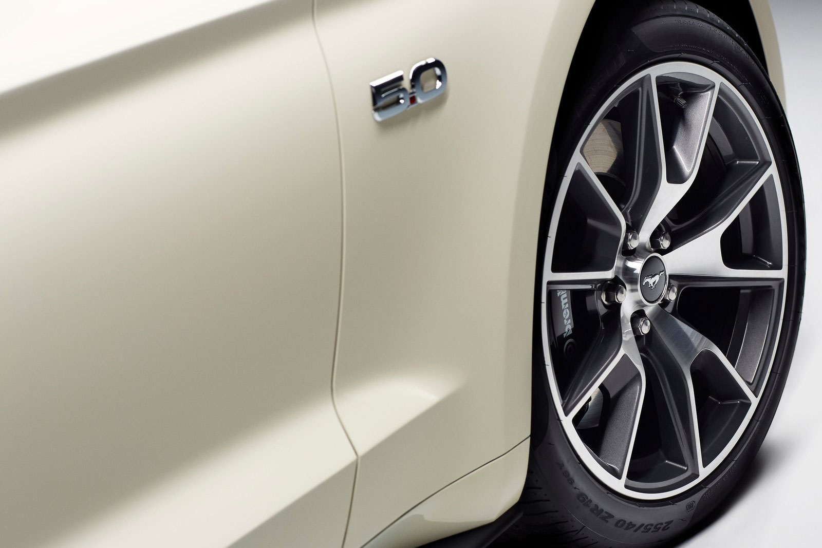 Zur exklusiven Ausstattung der „Mustang 50 Year Limited Edition“ gehören Original-Details der ersten Mustang-Generation, so zum Beispiel die zwei ursprünglichen Außenfarben: Der Ur-Mustang mit der Seriennummer 0001 war in Wimbledon White lackiert, seinerzeit erhältlich war außerdem noch die Lackierung in Kona Blue. Dementsprechend wird das Jubiläumsmodell ebenfalls exklusiv in diesen beiden Lackierungen ausgeliefert.