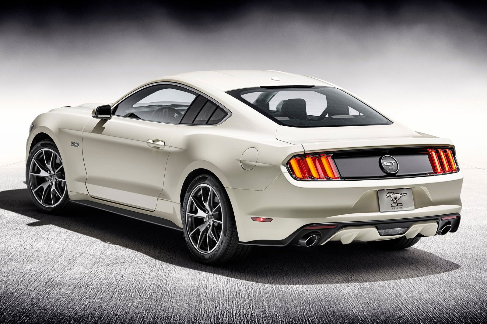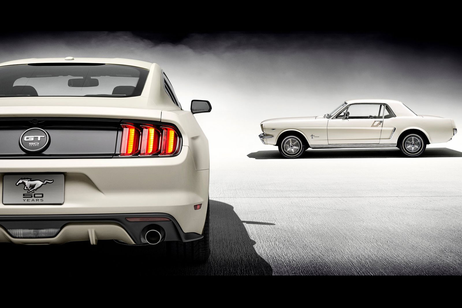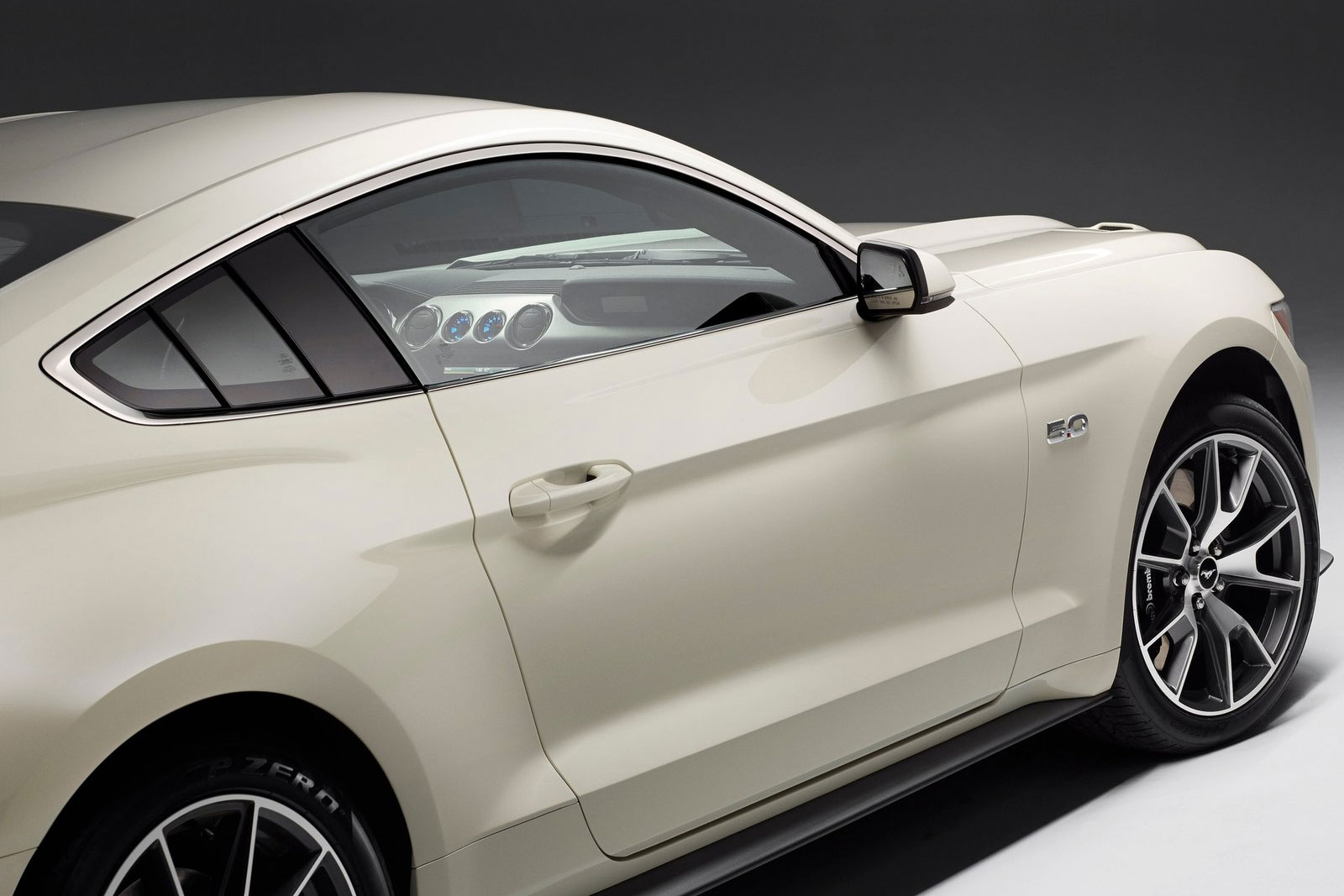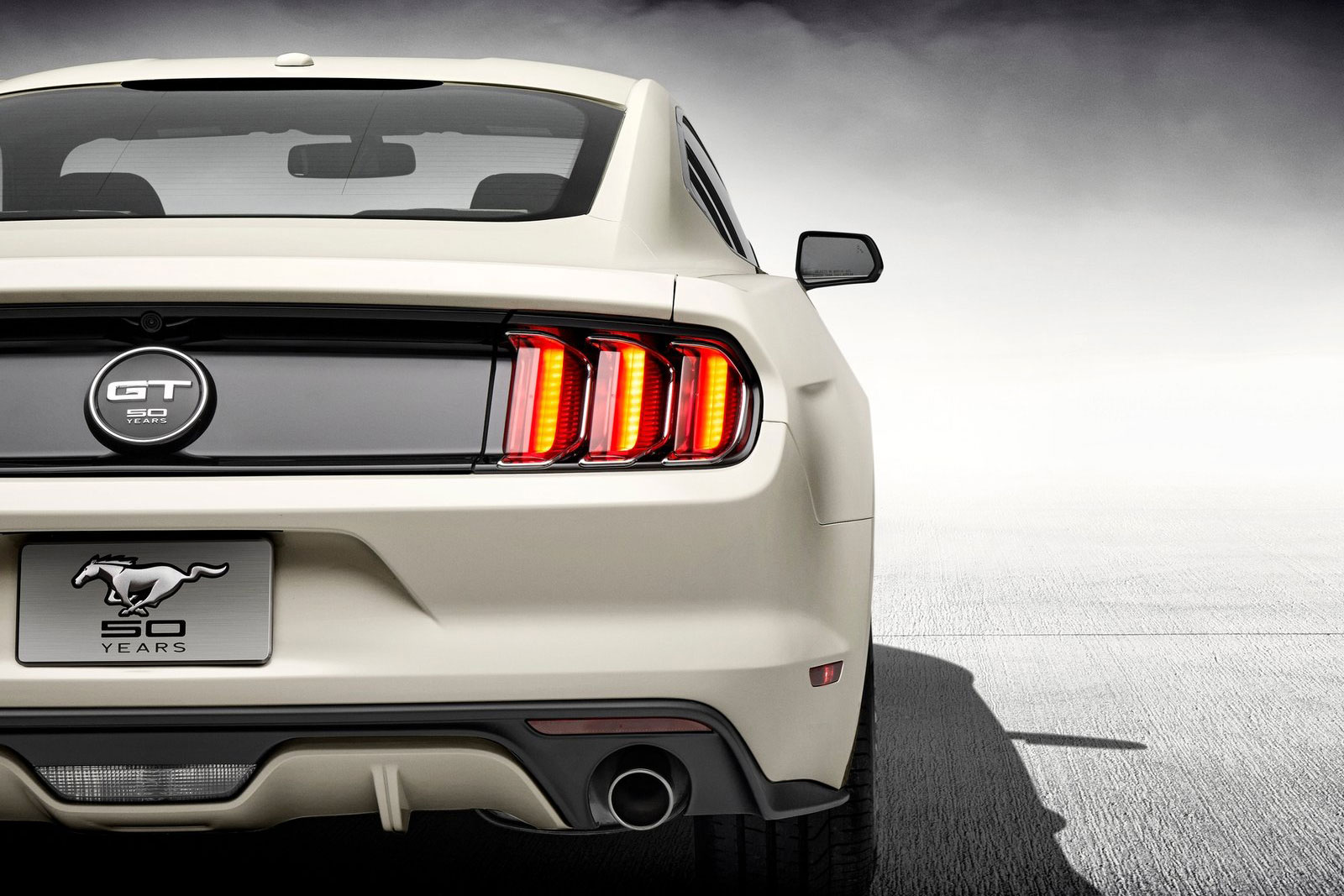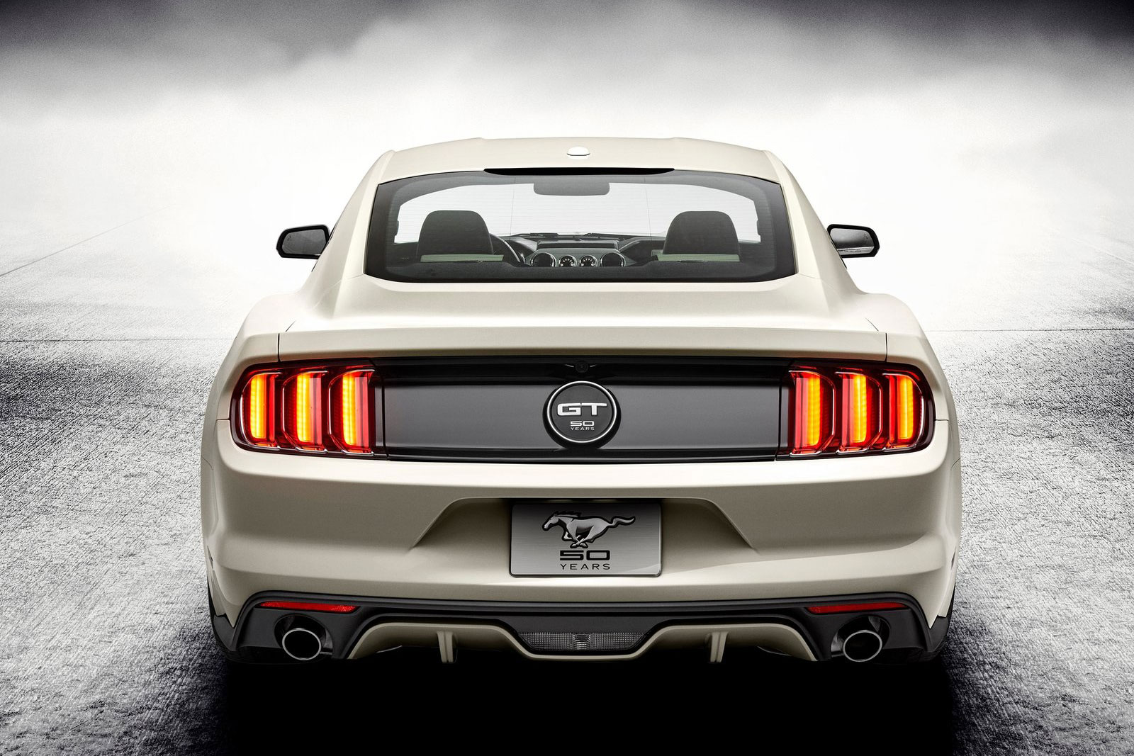 Die Chromblenden an den Rückleuchten wurden von einem Design-Vorschlag von Gale Halderman im Jahre 1962 inspiriert, dessen Gestaltungs-Ideen bei der Produktion des ersten Modells im Jahre 1964 aufgegriffen wurden. Zudem wird die „Mustang 50 Year Limited Edition“ das einzige Modell sein, das ein großes „Faux Gas Cap“-Emblem am Heck trägt, welches bereits vor 50 Jahren den Ford Mustang GT schmückte.