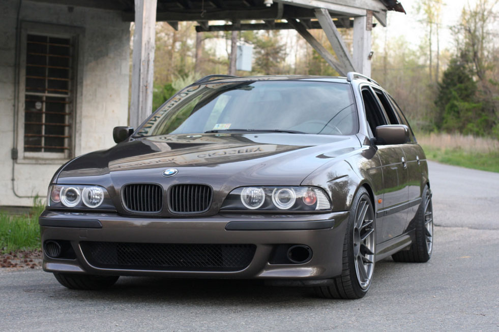 {1}So geschehen bei diesem Modell der E39 Serie, dem sein Besitzer eine umfangreiches technische Überarbeitung zuteil werden ließ. Aus dem in „Mojave Metallic“ Braun lackierten Modell wurden Motor, Fahrwerk und Getriebe entfernt und durch neue, wesentlich stärkere Komponenten ersetzt. Unter der Haube dieses BMW „M5 Touring“ wütet ein 7,0-Liter GSMPP LSX 427 von Thomson Automotive, der rund 600 PS bereit stellt. Das Getriebe ist ein Tremec Magnum XL und wurde mit einer original M5 Antriebswelle und einem M5 Differential mit einer veränderten Getriebeübersetzung von 3.15 auf 3.62 kombiniert. Derart ausgerüstet, darf das Einzelstück, das bis auf neue Felgen und vierflutiger Abgasanlage äußerlich unverändert geblieben ist, seinen V8 Sound ziemlich ungefiltert in die Lande schreien und dürfte den ein oder anderen Sportwagenbesitzer einen ordentlichen Schrecken einjagen.