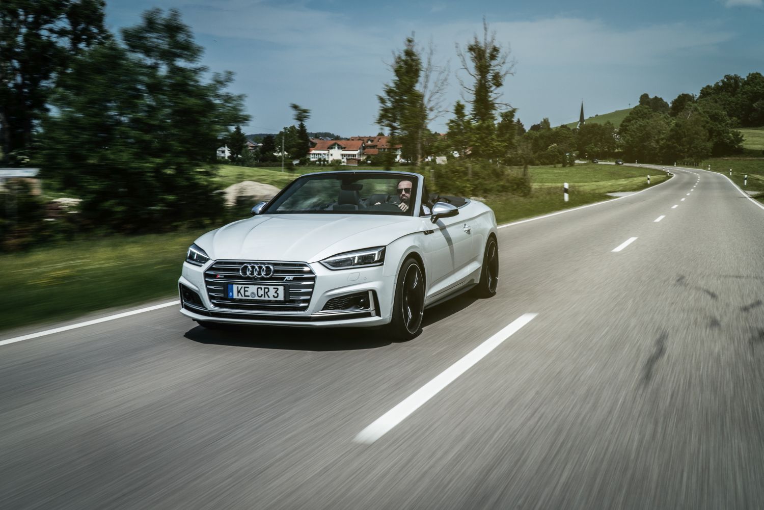 Nachdem Audi seinen neuen RS5 bislang lediglich als Coupé anbietet, gibt es für Tuner momentan mehr als genug zu tun, die maximal 354 PS starke offene Variante zumindest annähernd auf dessen Leistungsniveau zu pushen. Nun präsentiert: das Abt Audi S5 Cabriolet. Da der neue RS5 auf den bisher angestammten V8 verzichtet und stattdessen auf einen aufgeladenen V6 setzt, sind auch die Unterschiede in Bezug auf Sound und Leistungsentfaltung zwischen S- und RS-Modell nicht mehr so groß, als dass man nicht auch auf einen getunten S5 ausweichen könnte.