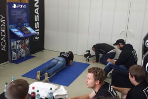 Am zweiten Tag fanden sich die noch verbliebenen Teilnehmer am Fahrsicherheitszentrum des Nürburgrings ein, um das weitere, weitaus anstrengendere Programm in Angriff zu nehmen. Los ging es mit einem Fitnesstest. Dabei mussten drei Übungen absolviert werden. Liegestütze (so viel wie möglich in 60 Sekunden), „Planking“ (solange wie möglich), sowie Hochsprung.