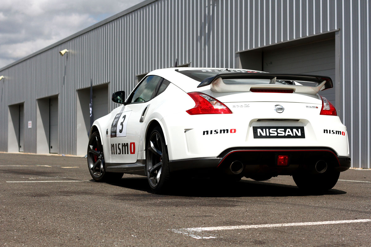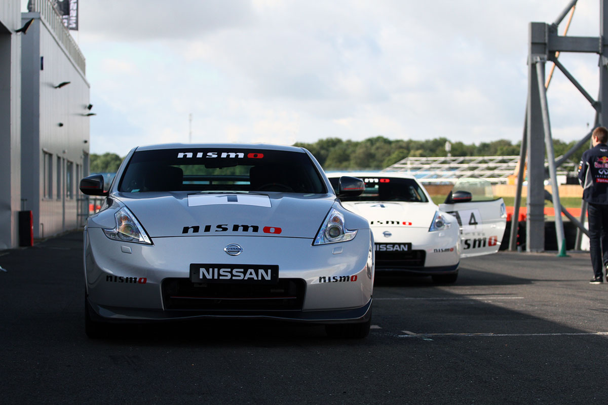 Nach dem Mittagessen geht es endlich auf die Rennstrecke – zuerst in drei Nissan 370Z Nismo, in denen man die Strecke kennen lernt. Optisch ja schon ein gelungener Wurf, machte der Z auch auf der Piste eine sehr gute Figur. Schöner, gleichmäßiger Durchzug, eine knackige Schaltung und eine präzise Lenkung in Verbindung mit einem gutmütig abgestimmten Fahrwerk verleiteten so manchen Fahrer zu hübschen Drifts und flotten Rundenzeiten. Da der 370Z schon fast als „idiotensicher“ zu bezeichnen ist, sind schon nach kurzer Zeit alle auf mehr „Bumms“ aus.