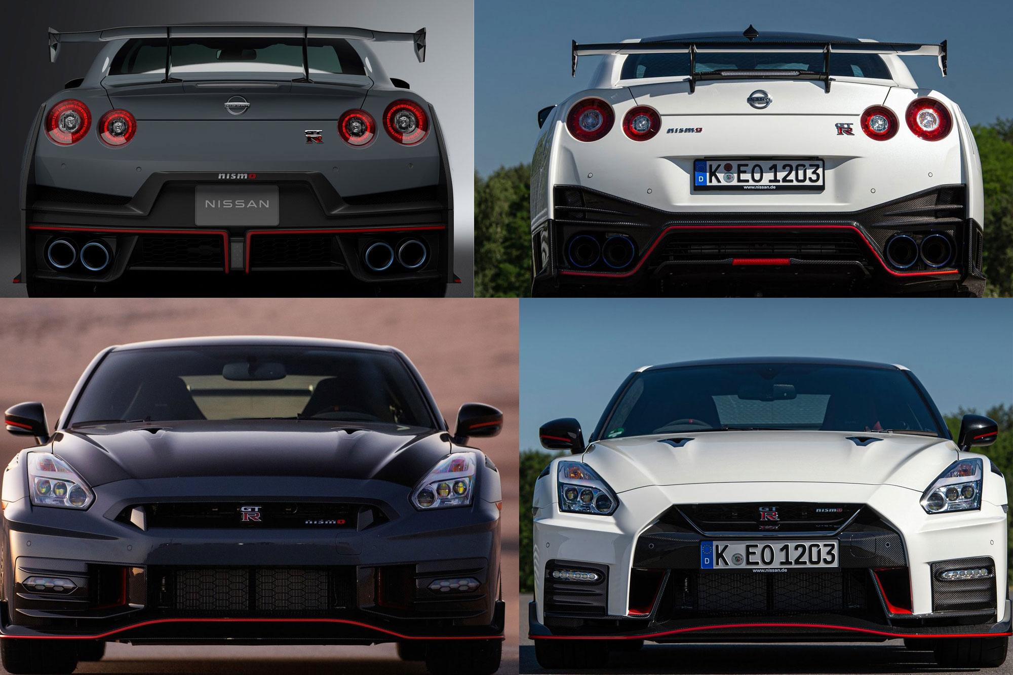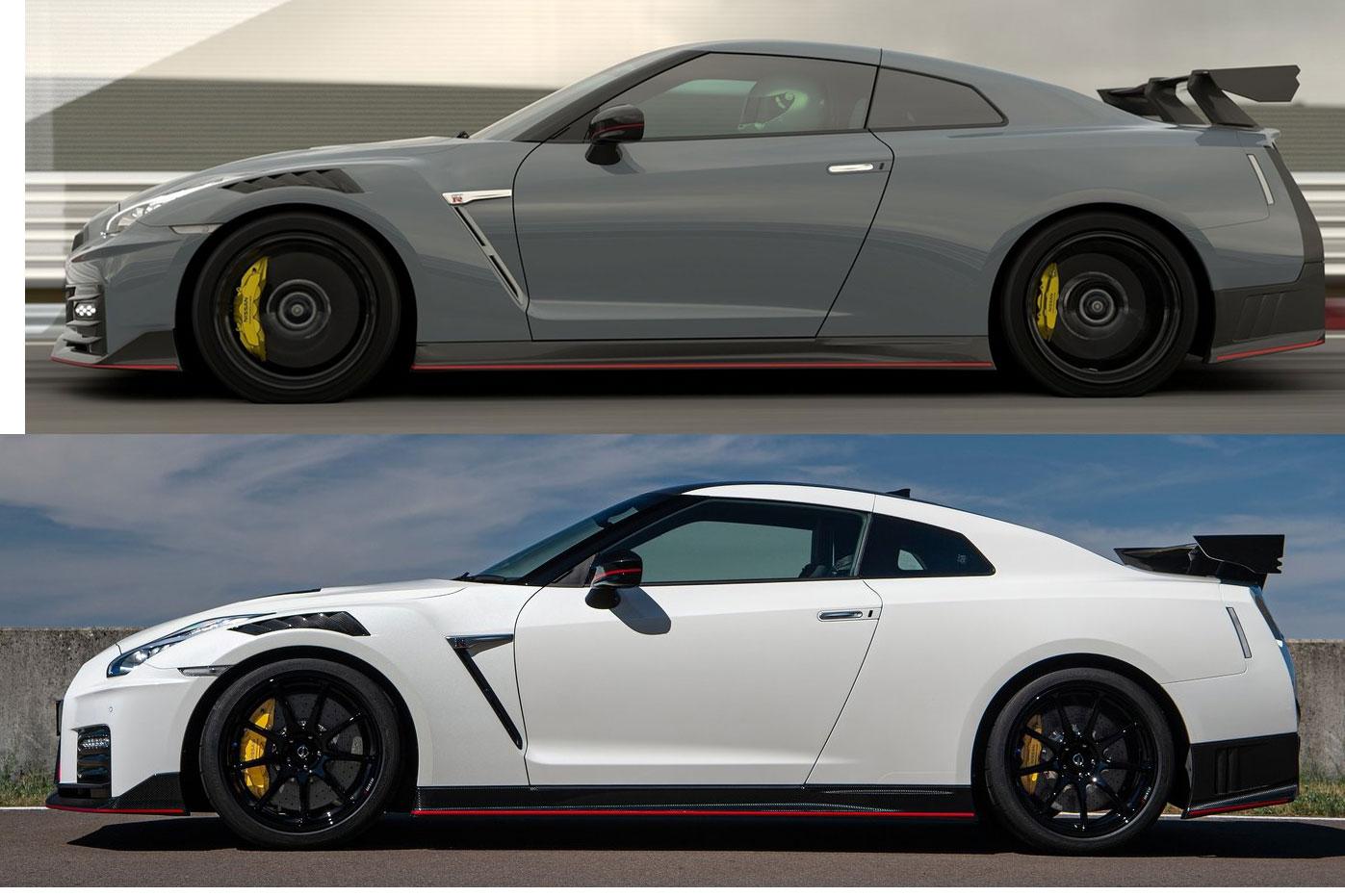 Doch bei der Optik gibt sich das 2024er Modell ganz klar zu erkennen. Vor allem an Front und Heck sieht man die Veränderungen zum Vorgänger (rechts im Bild unten). Interessant: Von vorne sieht der GT-R R35 nun wieder etwas mehr aus wie sein Vorgänger – der R34.