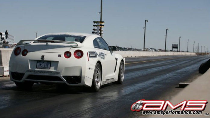 Wenn „dezentes“ Tuning zu einer Viertelmeilen-Zeit von 9,9 Sekunden führt, dann muss schon die Basis einiges leisten können. Im Falle des Nissan GT-R muss die Konkurrenz aus Porsche Turbo und Co. ja schon länger zittern, mit dem neuen Leistungskit von US-Tuner AMS müssen sich nun auch Lamborghini Murciélago und Konsorten in Acht nehmen. Dank neuer Turbolader – nach eigenen Angaben ohne jegliches Turboloch – und dem Einsatz einer neuer Abgasanlage sowie eines größeren Kühlers steigt die Leistung des 3,8-Liter-V6 von 485 auf stramme 760 PS. Wer hochoktanigen Sprit tankt, hat sogar 861 PS unter dem Häubchen. Dank des Allradantriebs und der Automatik geht’s dann in besagten 9,9 Sekunden und damit verdammt hurtig über die Viertelmeile. Der Nissan GT-R von AMS ist damit der schnellste seiner Art und im folgenden Video soll das unter Beweis gestellt werden.