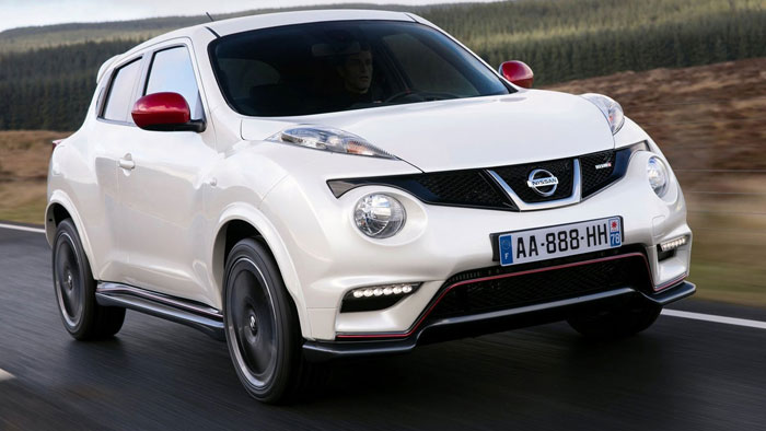 Vom „normalen“ Nissan Juke Turbo unterscheidet die NISMO-Version nicht nur die höhere Leistung (plus 10 PS und 10 Nm), auch das Fahrwerk wurde modifiziert, soll so mehr Traktion und weniger Rollneigung aufweisen. Außerdem reagiert die Lenkung nun direkter, zwecks optischer Heraushebung wurde zusätzlich die Front überarbeitet und auch die Seitenschweller sowie die Heckschürze wurden dem NISMO-Style angepasst. Serienmäßig rollt der bis dato sportlichste Juke – sieht man einmal vom Juke-R ab – auf 18-Zoll-Alus, die mit 225/45 messenden Pneus bezogen sind. Zu haben ist der Wagen in drei Lackierungen: Zur Wahl stehen Pearl White, Black Metallic und Silver Grey. Alle tragen die roten Außenspiegelkappen und den um die Unterseite des Wagens laufenden roten Zierstreifen.