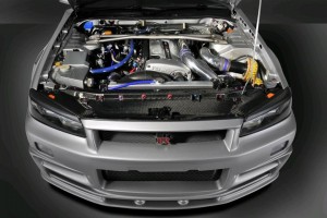 Wie ihre Vorbilder – die NISMO-Crew in Japan – haben auch die Essener einen „alten“ Nissan Skyline R34 GT-R organisiert und in 3,5 Monaten Handarbeit zunächst zerlegt, um dann einen echten Renner daraus zu zaubern. Der präsentiert sich nun in einem fast neuwertigen Zustand und soll überdies mit jeder Menge zusätzlichem Motorsport-Equipment überzeugen. Unter anderem wurde der verbaute 2,6-Liter-Reihensechszylinder mittels neuer Turbolader weiter unter Druck jetzt, was zusammen mit den weiteren Motor-Modifikationen zu einer Leistung von 523 PS am Rad und 597 Newtonmetern Drehmoment führt. Um nur einen kleinen Eindruck von den hochwertigen Veränderungen an Aggregat und Umfeld zu bekommen, sein hier die HKS-Ladeluftkühler, HKS-Elbows, Half Pipe-, Racing Suction- und Chamber-Kit, Einspritzdüsen und Zündkerzen sowie die HKS-Zylinderkopfdichtung genannt. Eine genaue Auflistung der technischen Details haben wir HIER für Sie in Netz gestellt.