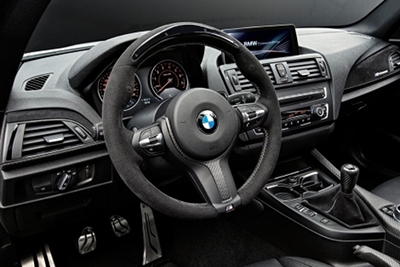 Auch im Innenraum setzt sich der optische Leichtbau fort. Interieurleisten, Schalt- und Handbremshebel werden in einer Alcantara-Carbon-Kombination ausgeführt. Hinzu kommt das M Performance Lenkrad mit roter Mittenmarkierung sowie Pedalaufsätze aus Aluminium. Jedes 2er Coupé soll ab Marktstart im März 2014 mit dem M Performance Zubehör ausgestattet werden können. Genaue Preise nannten die Münchener aber noch nicht.