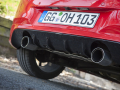 Schon von außen zeigt der Corsa, im exklusiv für den OPC erhältlichen Opal-Blau gehalten, seine Zugehörigkeit zur OPC-Familie. Große Lufteinlässe, eine Hutze in der Motorhaube – die Front zeigt schon eine Menge Überholprestige für einen Kleinwagen. Die stark ausgeprägten Schwellerleisten schlagen den Bogen zum Heck des OPC-Modells. Bereits der serienmäßige Spoiler schreit nach Rennstrecke, der optionale Zubehörspoiler noch mehr. Beide sind übrigens funktional und nicht nur Deko. Einen weiteren sportlichen Akzent setzt die zweiflutige Remus-Sportabgasanlage, die von einem Diffusor umrandet wird.