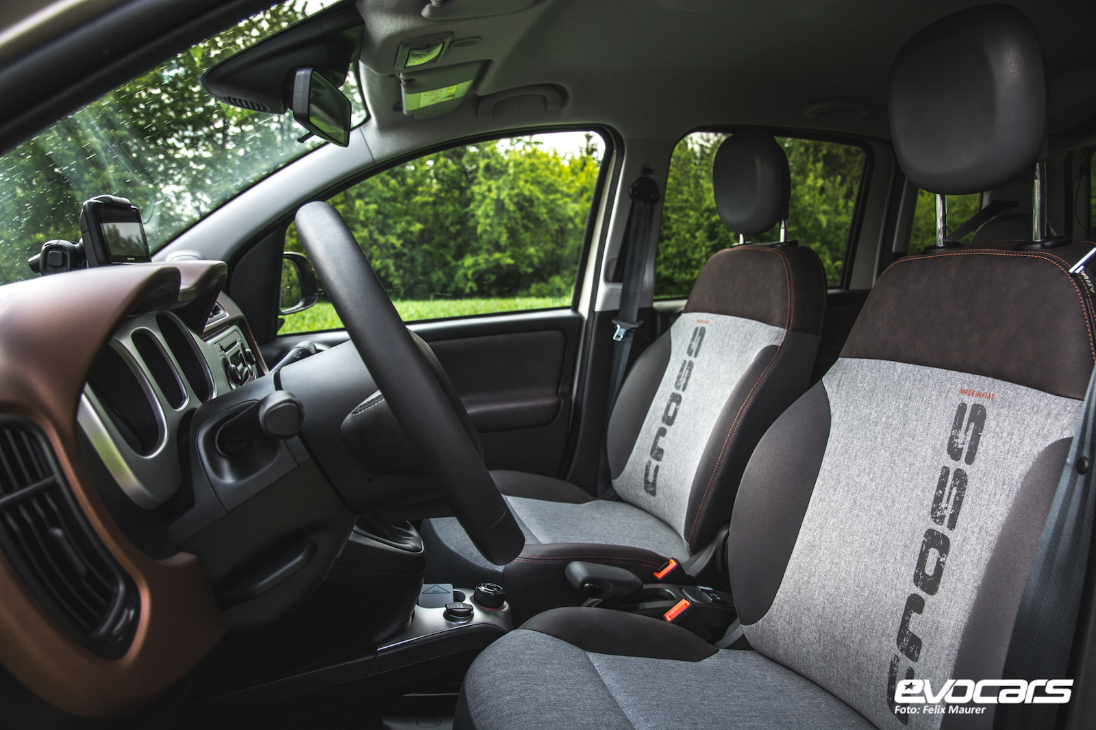 Auch heute ist der Panda ein simples Auto: Im Innenraum prägen sehr einfache, aber robuste Materialien das Bild. Sie sind ordentlich verarbeitet und sehen so aus, wie sie sind. Ein bisschen Chic kommt mit den Cross-spezifischen Sitzen und Kunstleder-Stoff-Kombination in den erdigen Innenraum und nimmt ihm die in der Basis-Version sonst so vorherrschende graue Tristesse. Das Gestühl ist bequem und gut dimensioniert, der Seitenhalt definiert sich durch das Gewicht des Fahrers. Je schwerer desto besser. Einzig der Preis für das kurze Auto ist recht hoch, oder sagten wir das schon? Der Diesel ist jedenfalls ohne Allradantrieb als Panda Lounge für 14.690 Euro erhältlich. Das liest und verdaut sich doch schonmal deutlich besser. Zumindest, wem der Allradantrieb, die Cross-Optik und ein paar Zusatzausstattungen entbehrlich sind.