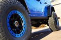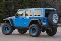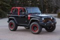 Den Anfang macht dabei zunächst das klassische Wrangler Modell, das in drei verschiedenen Varianten vertreten ist. Variante eins kommt in metallic schwarz und roten Akzenten daher und ist mit einem Lift-System, Dana 44-Achsen und einem Rock-Trac transfer case ausgestattet. Dadurch soll ein Kletter-Ratio von 73:1 möglich sein. Ledersitze und ein 3,6-Liter-V6 mit neuer Luftzufuhr und Abgassystem vervollständigen den „Level Red“. Die zweite Variante, auf den Namen „MOJO“ getauft, verfügt über die gleichen Modifikationen wie „Level Red“, darüber hinaus aber auch über 37 Zoll große „BFGoodrich Mud Terrain“-Tires, LED Scheinwerfer und eine Bi-Colour-Innenausstattung. Der dritte im Bunde, die „Maximum Performance“-Variante, kommt in leuchtendem Blau daher und verfügt unter anderem über elektronisch gesteuerte Dana 60 Achsen und einem Zehn-Zentimeter Lift-System.