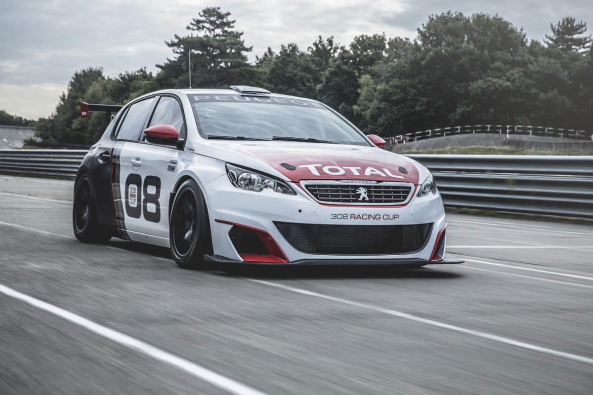 Optisch hebt sich der 308 Racing Cup zudem durch den gewaltigen Heckflügel nach WTCC-Reglement, neue Schürzen, größere Kühlöffnungen und einen großen Frontsplitter vom Straßenmodell ab. Zudem drückten die Franzosen das Gewicht des kompakten Renners auf 1.000 bis 1.050 Kg.