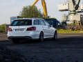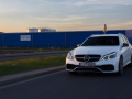 Das schöne am E 63 S AMG ist, dass sich der Fahr- und Beschleunigungsspaß nicht nur auf die Autobahn beschränkt. Denn die Art und Weise, wie dieser Powerkombi um die Ecke geht, ist das eigentlich Beeindruckende. Die ohnehin straff ausgelegte Airmatic könnte für uns immer im mittleren Sport-Modus verbleiben. Während sie uns in der Comfort-Stellung in schnell gefahrenen Kurven etwas zu unpräzise und weich vorkam, ist die Sport + Position zu hart und unkomfortabel. Dank Sperrdifferential an der Hinterachse und zusätzlichem Bremseingriff bleibt die befürchtete Kopflastigkeit fast völlig aus – das Ergebnis ist sogar ein leicht eindrehendes Heck und über weite Strecken faszinierende Neutralität. Der Allradantrieb verteilt die Leistung zu 67 Prozent nach hinten, was dem E 63 S eine beinahe hecktrieblerähnliche Fahrdynamik beschert. Nur eben ohne rauchende Hinterreifen.