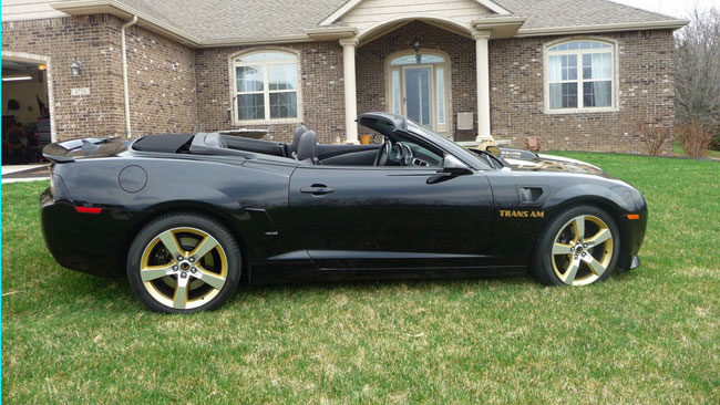 Was sein Leben als 2SS Camaro Cabrio begann, zitiert nun dank Bodykit den legendären Kult-Wagen aus den 70ern und kommt mit all den Annehmlichkeiten des 21. Jahrhunderts wie Head-Up-Display, Sitzheizung, Lederausstattung und Zusatz-Instrumenten daher. Merkmale des Trans-Am-Pakets sind die neu gezeichnete Front, die veränderten Heckleuchten und natürlich das unübersehbare Firebird-Logo auf Motorhaube und Kopfstützen. Gänzlich unberührt bleibt dagegen der 6,2-Liter-V8 mit 432 PS, der erst 4.350 km gelaufen ist. Das der Wagen die aufgerufenen 65.000 Dollar einbringen wird, halten wir dennoch eher für unwahrscheinlich, zumal ein neuer Camaro ZL1 bereits ab 61.550 Dollar zu haben ist und sich ein vergleichbares „Trans-Am“-Paket für wenige tausend Dollar nachrüsten lässt.
