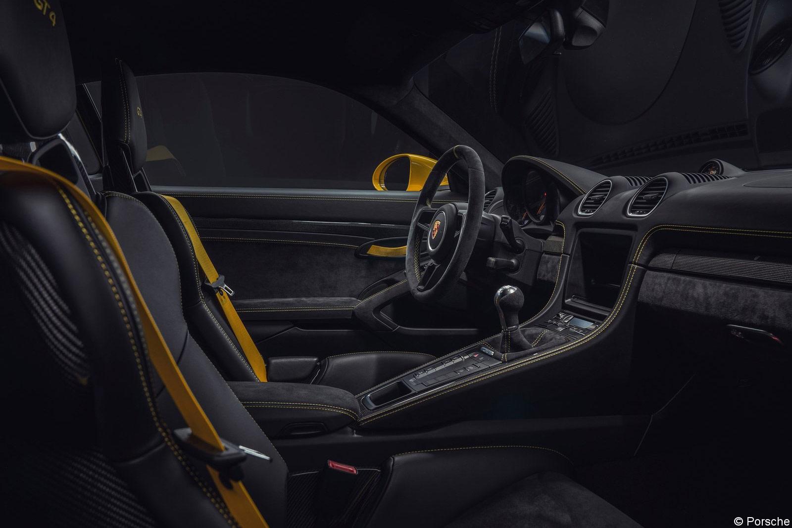 Erstmals kommt dem 718 Spyder das hochperformante GT-Fahrwerk des 718 Cayman GT4 zugute. Mit seiner überragenden Kurvendynamik ermöglicht es ein emotionales Fahr-Erlebnis. Seine nochmals verfeinerten Leichtbau-Federbein-Vorder- und Hinterachsen greifen Rennsport-Technologien auf. Zum Teil übernehmen Kugelgelenke die unmittelbare Anbindung an das Chassis. Das PASM-Dämpfungssystem (Porsche Active Suspension Management) mit 30 Millimeter Tieferlegung senkt den Schwerpunkt ab und verbessert das Querdynamik-Potenzial. Es ist speziell für den Rundstreckeneinsatz ausgelegt und schärft die Fahreigenschaften des 718 Cayman GT4. Auch der 718 Spyder profitiert von dieser Auslegung. Das Porsche Stability Management PSM arbeitet hier noch sensibler und präziser, lässt sich wahlweise aber auch in zwei Stufen deaktivieren. Porsche Torque Vectoring (PTV) mit mechanischer Hinterachs-Quersperre verbessert die Längs- und Querdynamik, die Kurven-Performance und den Fahrspaß zusätzlich. Für den GT4 steht außerdem ein optionales Clubsport-Paket zur Verfügung. Es beinhaltet einen rückwärtigen Überrollbügel aus Stahl, einen Handfeuerlöscher und einen Sechspunktgurt für die Fahrerseite.