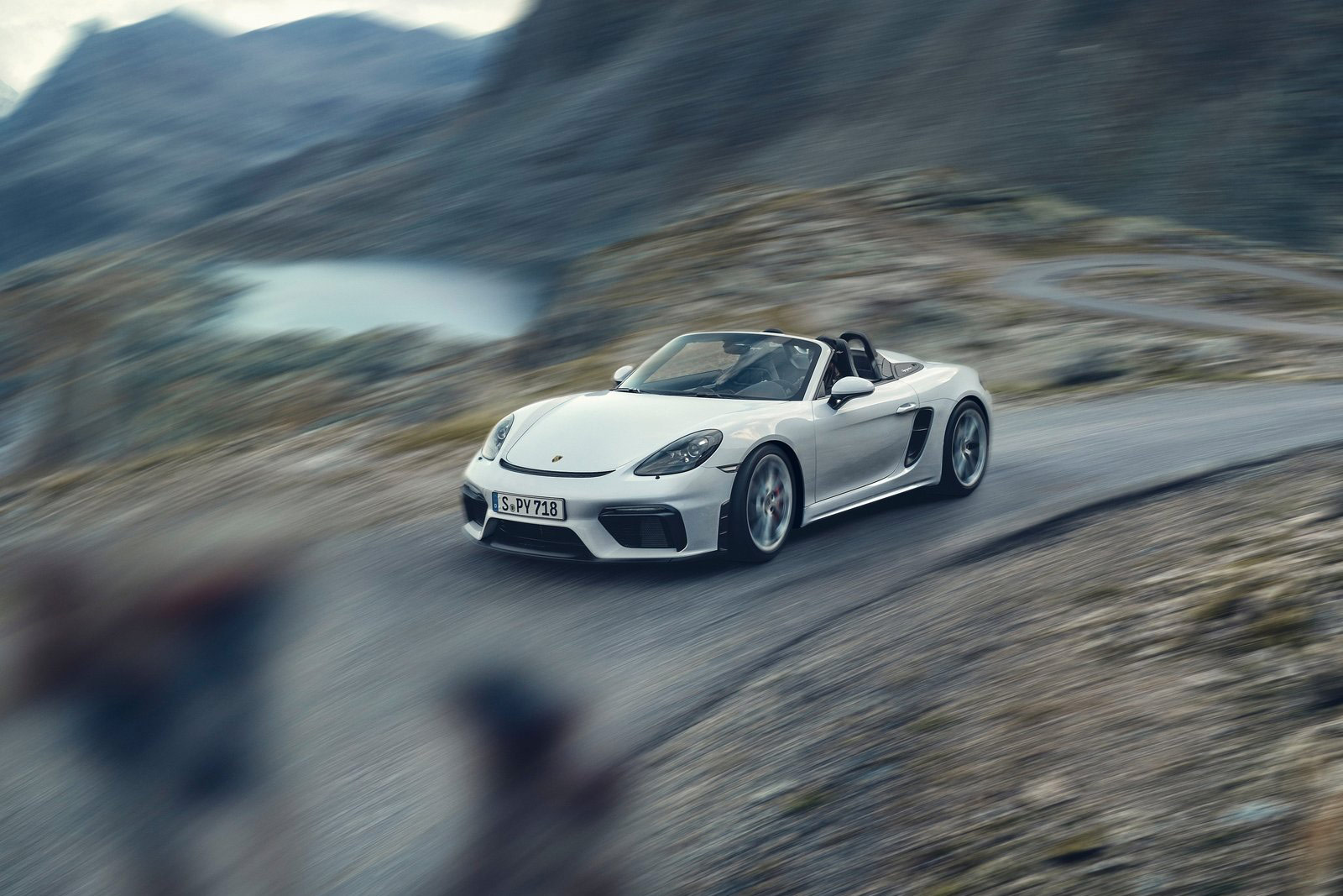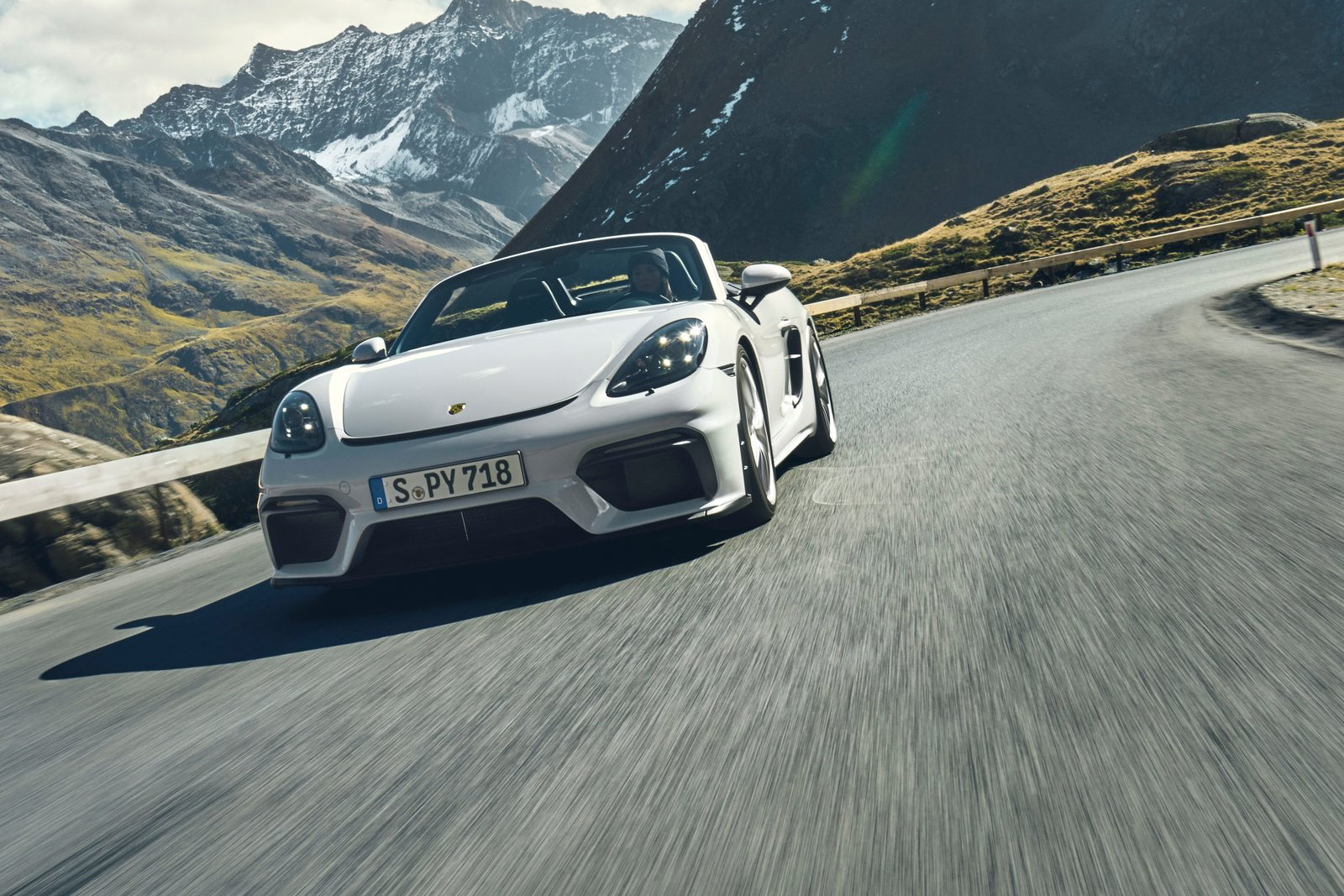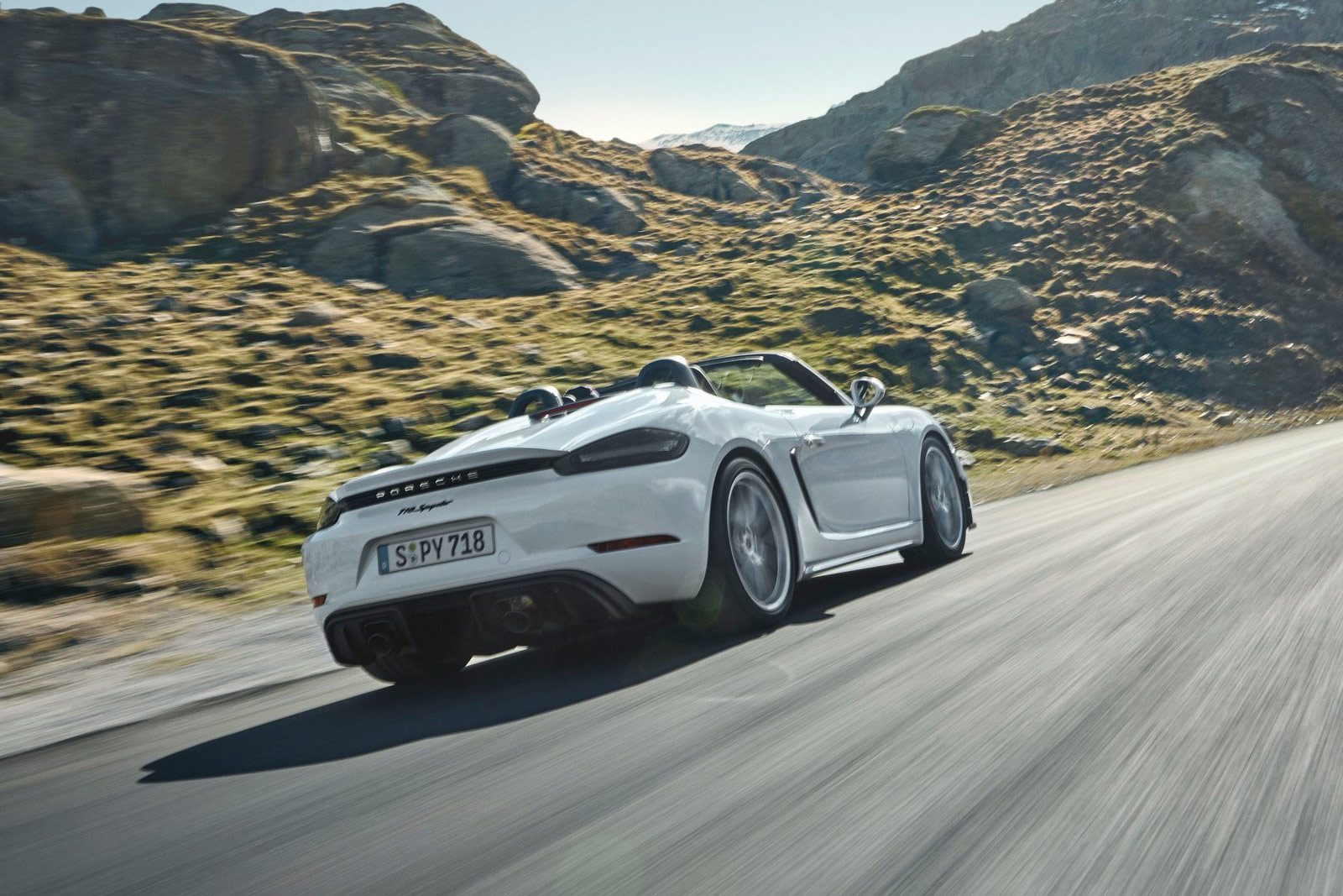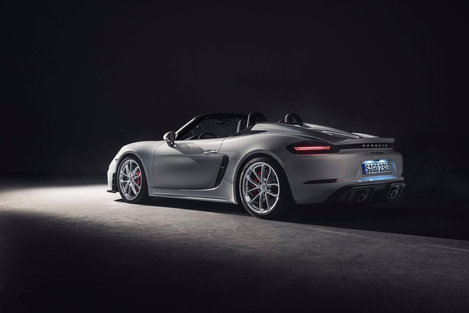 Der neue 718 Spyder ist eine puristische Fahrspaßmaschine mit hochgeschwindigkeitstauglichem Leichtbauverdeck. Er führt die Historie so berühmter Roadster wie dem Porsche 550 Spyder und dem 718 RS 60 Spyder fort. Offen wie geschlossen begeistert er mit einer faszinierenden Silhouette. Das Verdeck ist alltagstauglich und lässt sich mit wenigen Handgriffen unter dem Heckdeckel verstauen. Anders als der GT4 besitzt der 718 Spyder einen Heckspoiler, der bei 120 km/h automatisch ausfährt. Dank des funktionalen Diffusors ist er das erste Modell der Boxster-Familie, das an der Hinterachse aerodynamischen Abtrieb erzeugt.