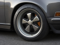 Der 911er (964) mit herausnehmbarem Dach wirkt nach dem Umbau von Singer eher wie ein Modell aus den 60ern, denn wie die Basis von 1990. In Auge fallen natürlich sofort die überarbeitete Karosserie sowie die montierten Fuchs-Felgen. Aber auch die kleinen Außenspiegel und die Modifikationen am Targa-Bügel und am Innenraum sind nicht zu übersehen. Zumindest aus unserer Sicht tut dem 90er-Jahre-Targa die Optik-Kur überaus gut, der Wagen wirkt nun deutlich eleganter.
