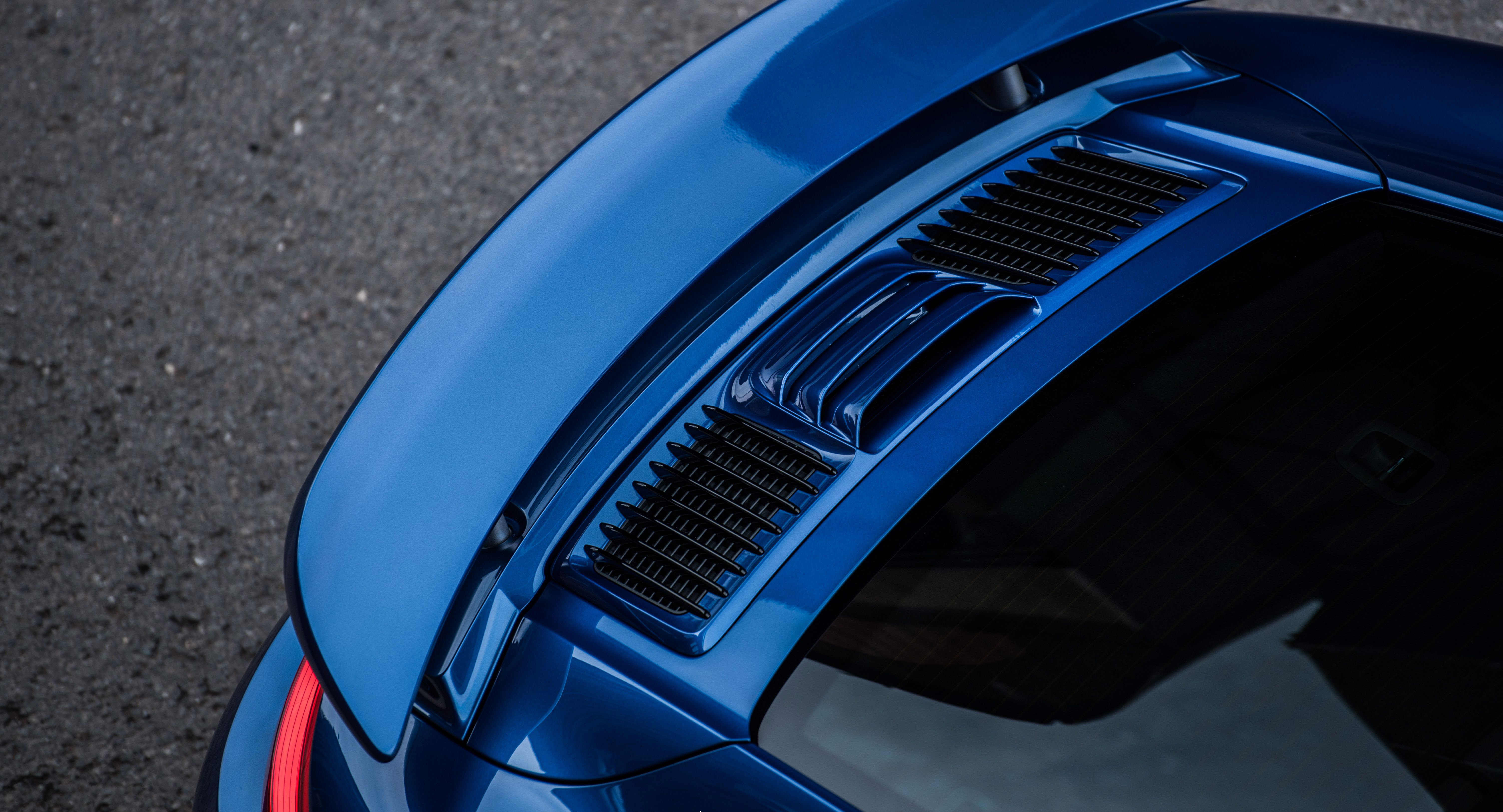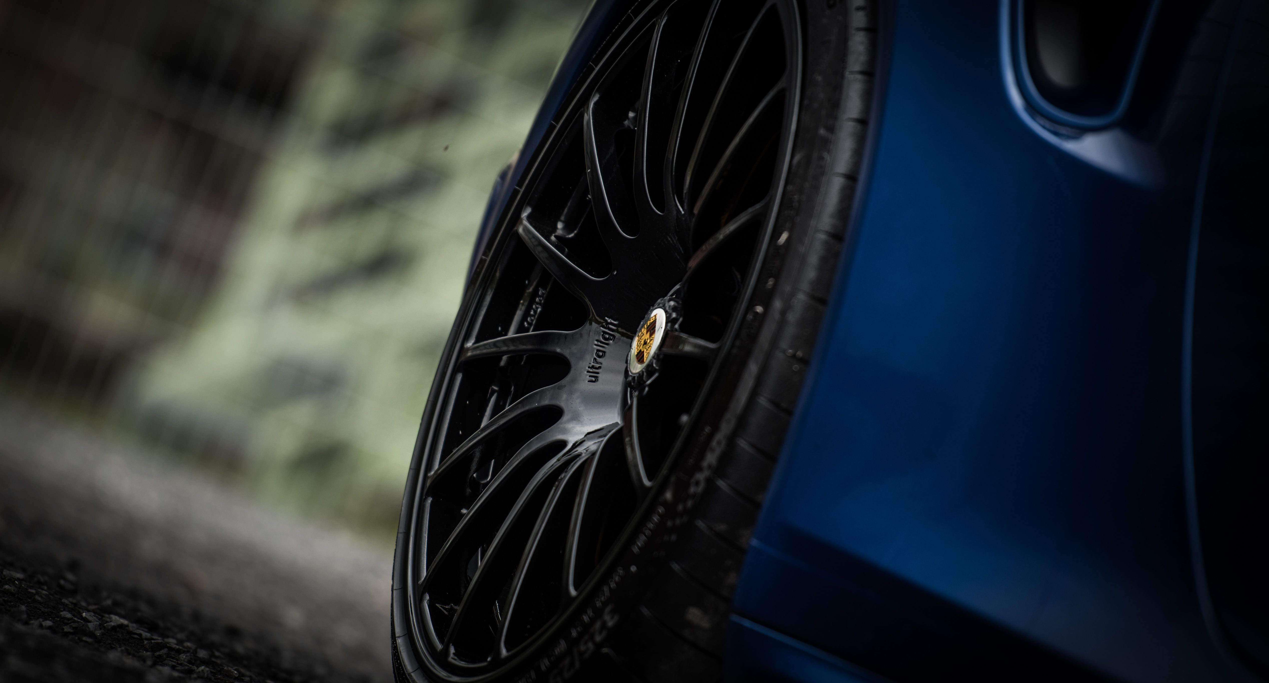 Abschließend punktet der auf den Namen „Blue Arrow“ genannte 911er noch mit Tieferlegungsfedern (30 mm) und einer Gewichtsersparnis von strammen 60 Kg – erreicht u.a. durch eine Carbon GT3 RS-Fronthaube und eine besonders leichte Carbon-Batterie.