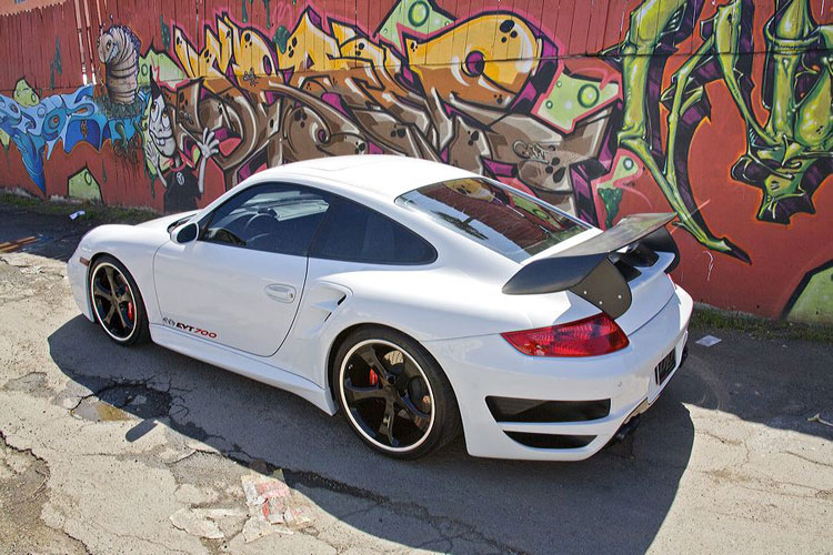 Fast einen Monat ist es her, da vermeldete der US-Tuner Evolution Motorsports (EVOMS) seine Rekordfahrt mit einem Porsche 911 Turbo auf der „Texas Mile“. Aus stehendem Start schaffte der auf 1000 PS erstarkte GTXXX (Basis 996) eine Endgeschwindigkeit von 372,3 km/h. Nun legt der Tuner nach und bietet auch für den gerade abgelösten 911 Turbo (997) einen solchen Extremumbau an. Hinter dem Kürzel „997TT EVO900“ verbirgt sich ein komplett neu aufgebauter Motor, der mit gewaltigen GT35 Turboladern bestückt wird und nun aus 3,8 Litern Hubraum schöpft (Serie: 3,6 Liter). Kaum ein Teil blieb im Boxer unberührt, neue Kolben, Wellen, Dichtungen und Leitungen sind nur ein kleiner Teil der Modifikationen. Im Ergebnis donnert das Aggregat im Heck nun mit beeindruckenden 1037 PS und wuchtet 988 Newtonmeter auf die Kurbelwelle.