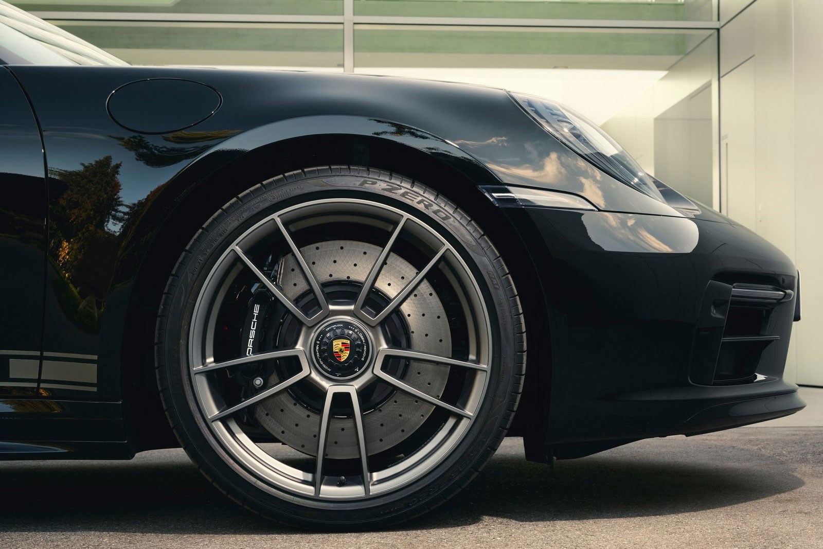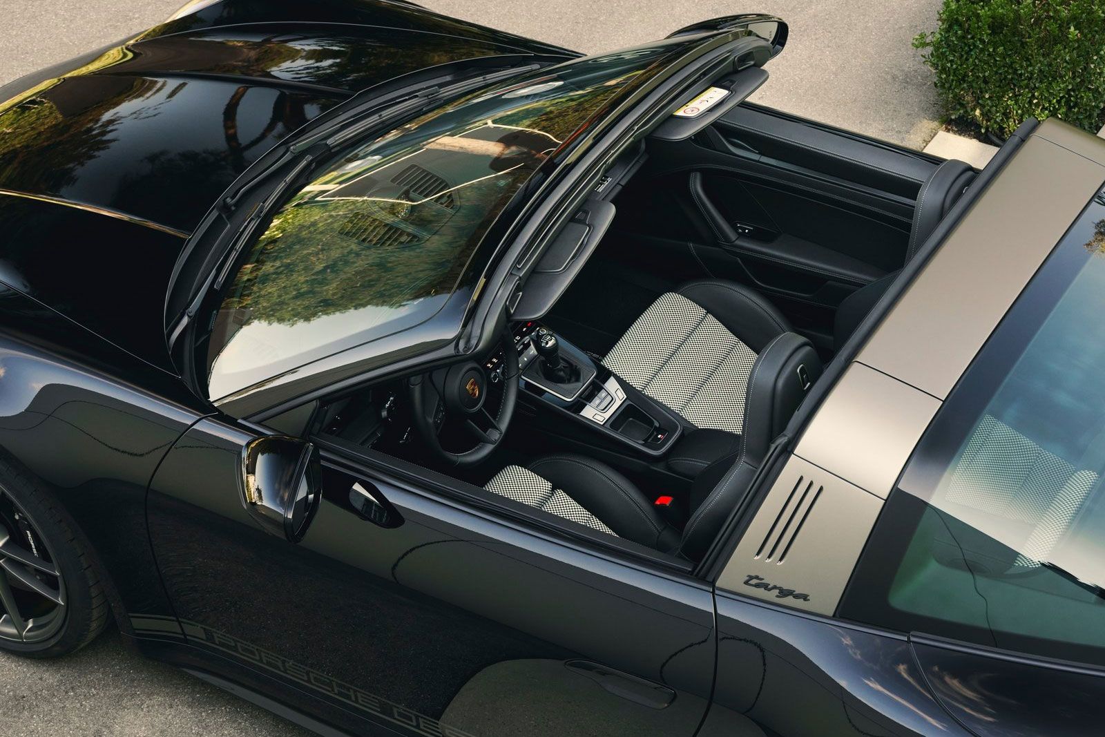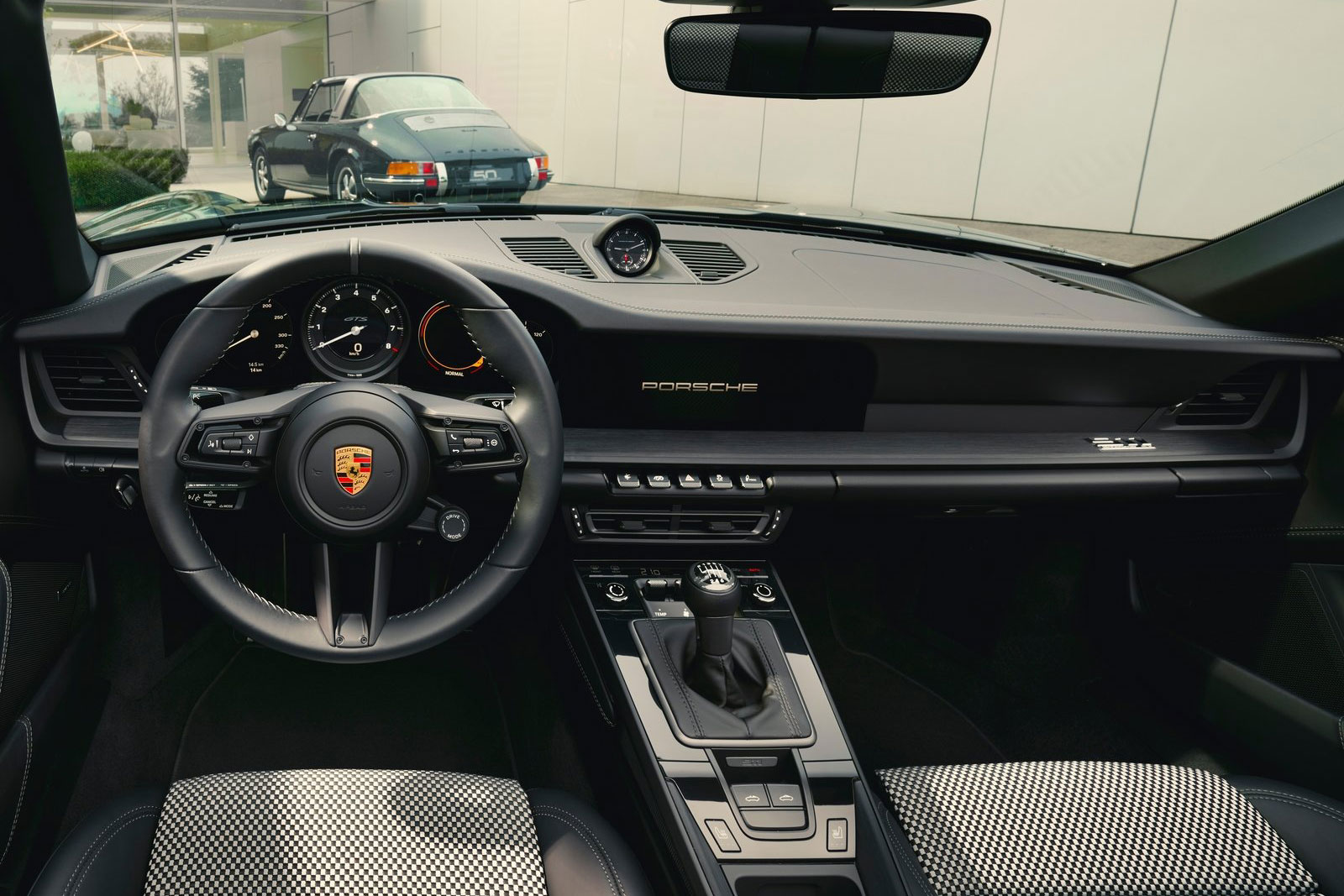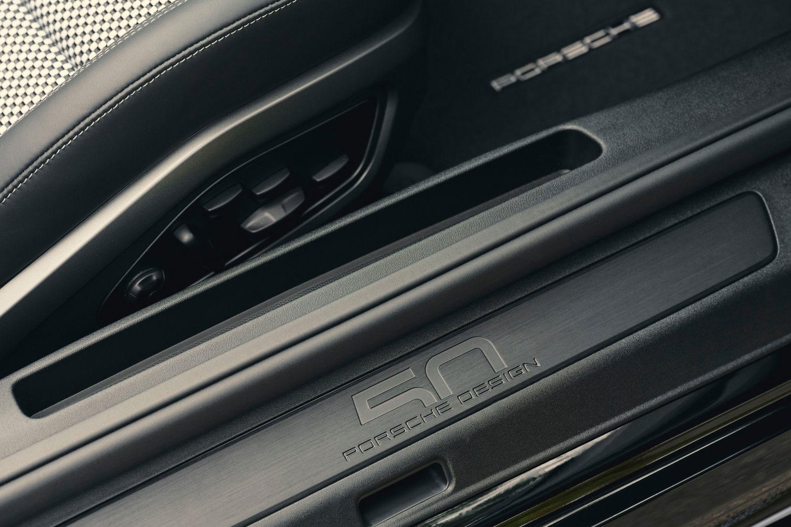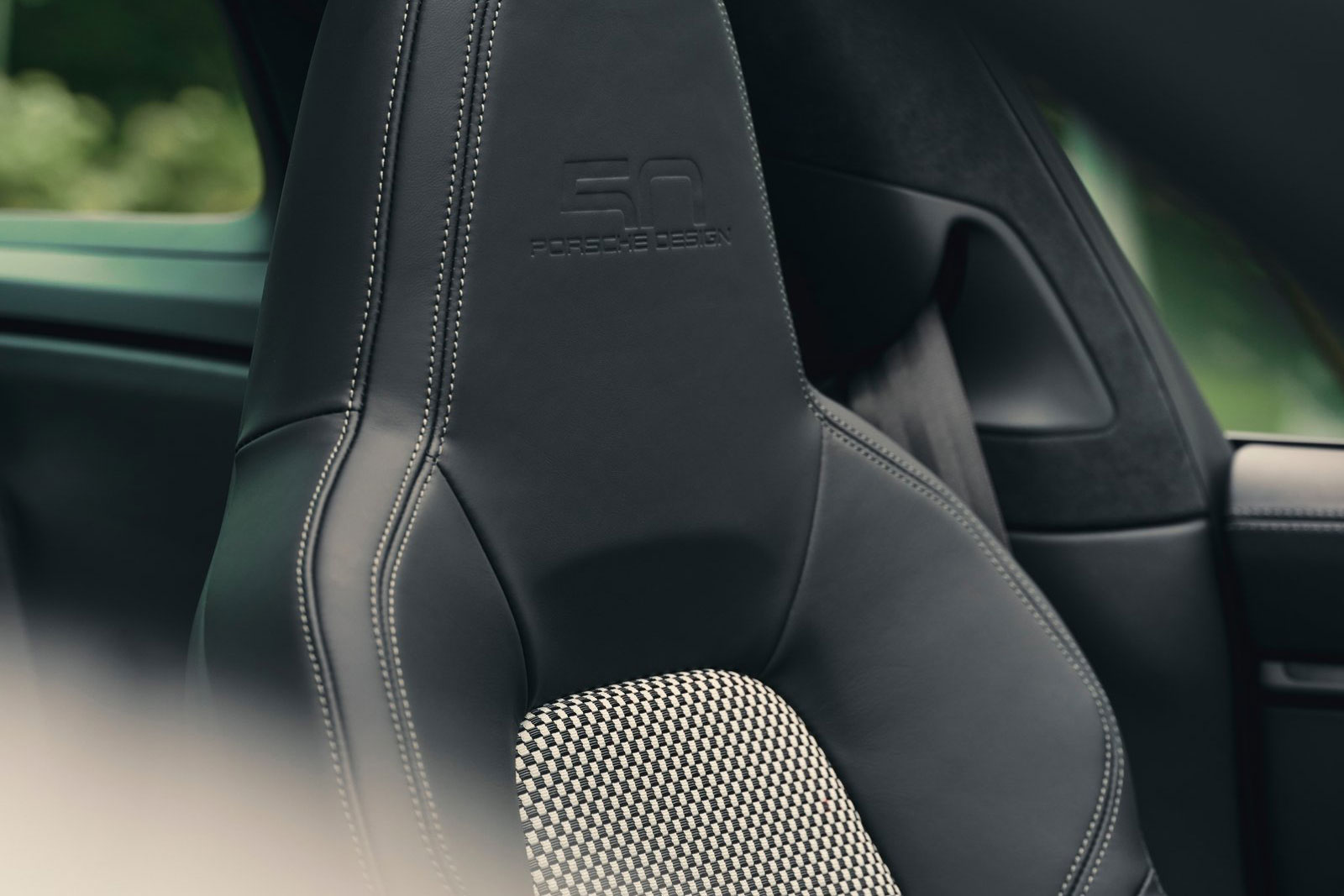 Die „Porsche 911 Edition 50 Jahre Porsche Design“ ist auf 750 Exemplare limitiert und erinnert in zahlreichen Ausstattungsdetails an die Design-Ikonen von F.A. Porsche. Neben der Exterieurfarbe Schwarz uni zitieren die mit Sport-Tex in klassischem Karomuster bezogenen Mittelbahnen der Sitze und der rote Sekundenzeiger der Porsche Design Subsecond Uhr des serienmäßig verbauten Sport Chrono-Paketes die Vergangenheit.