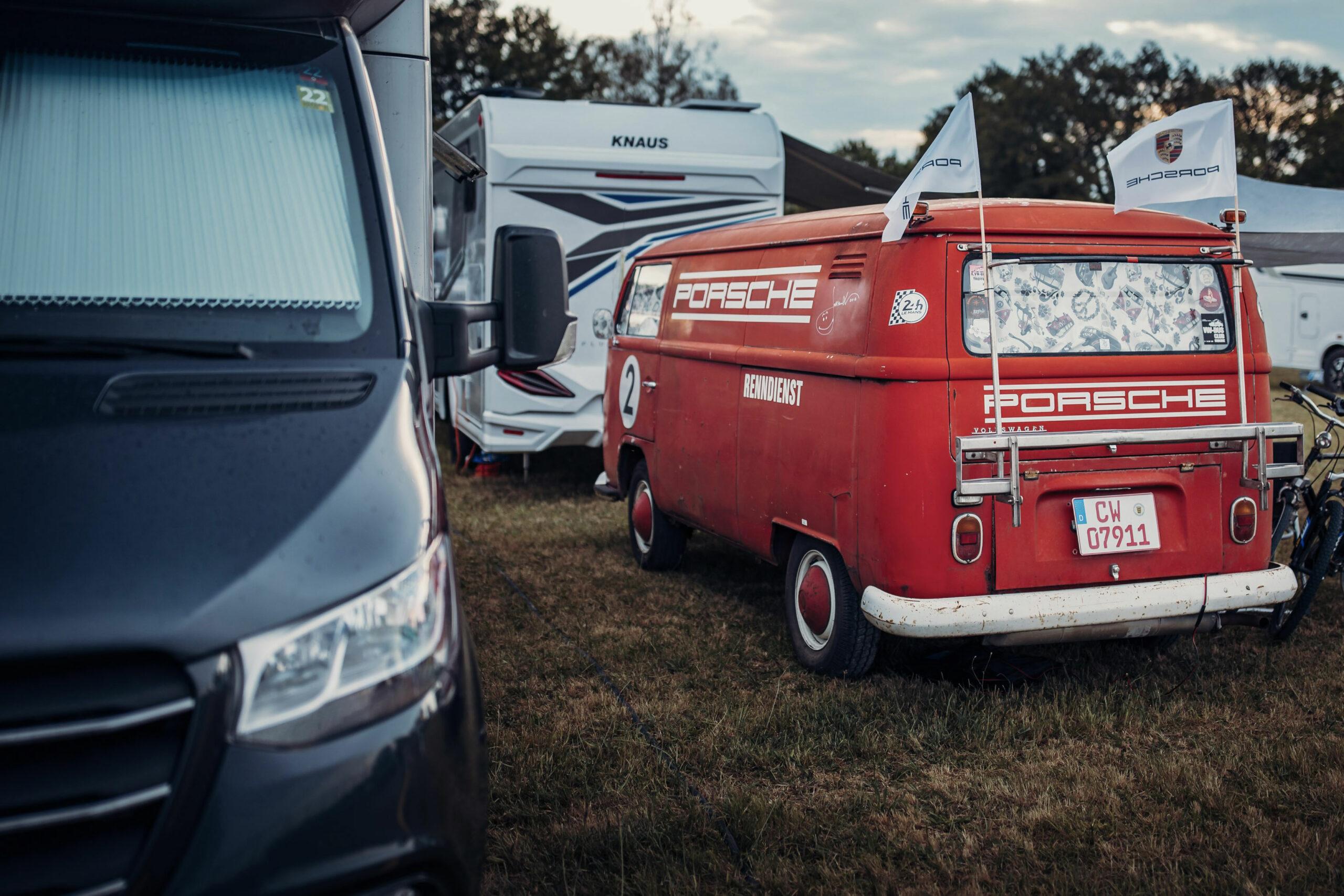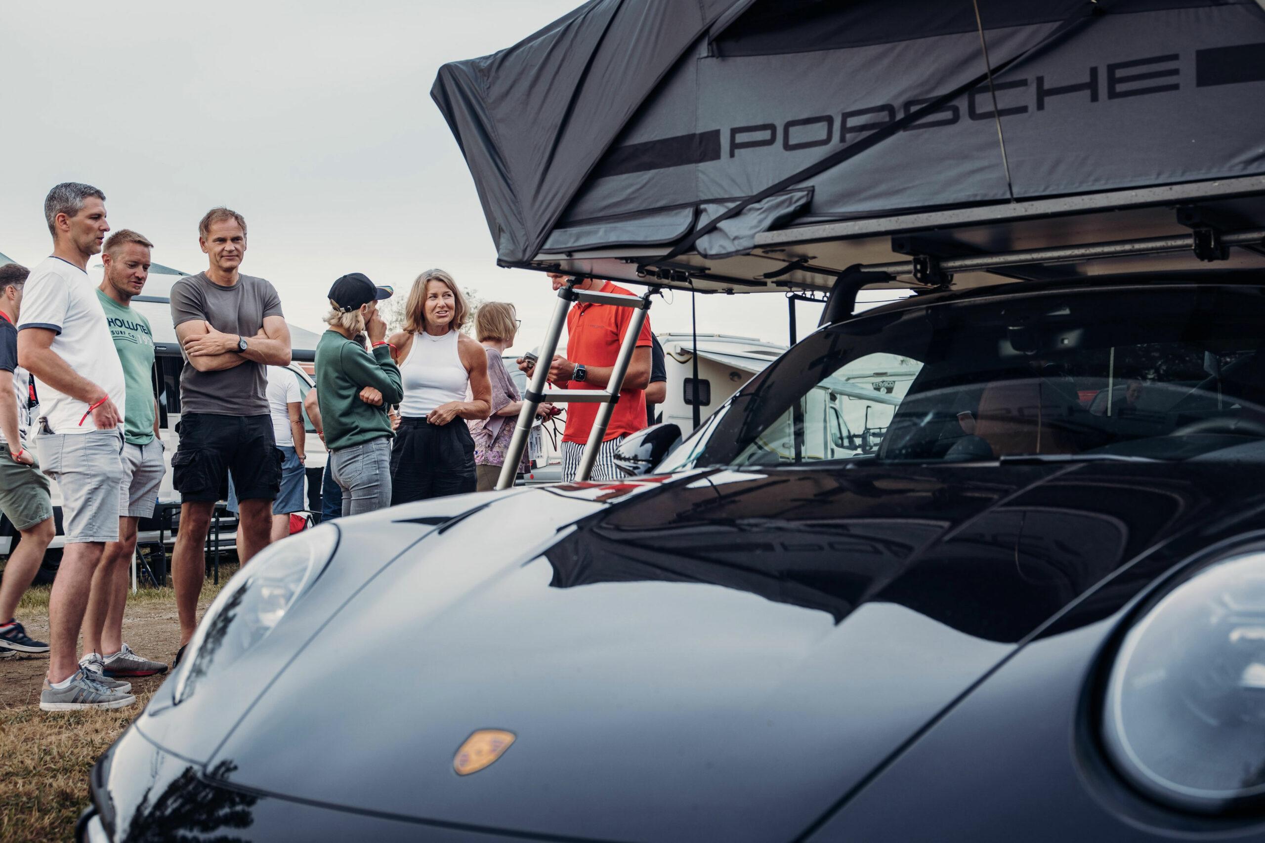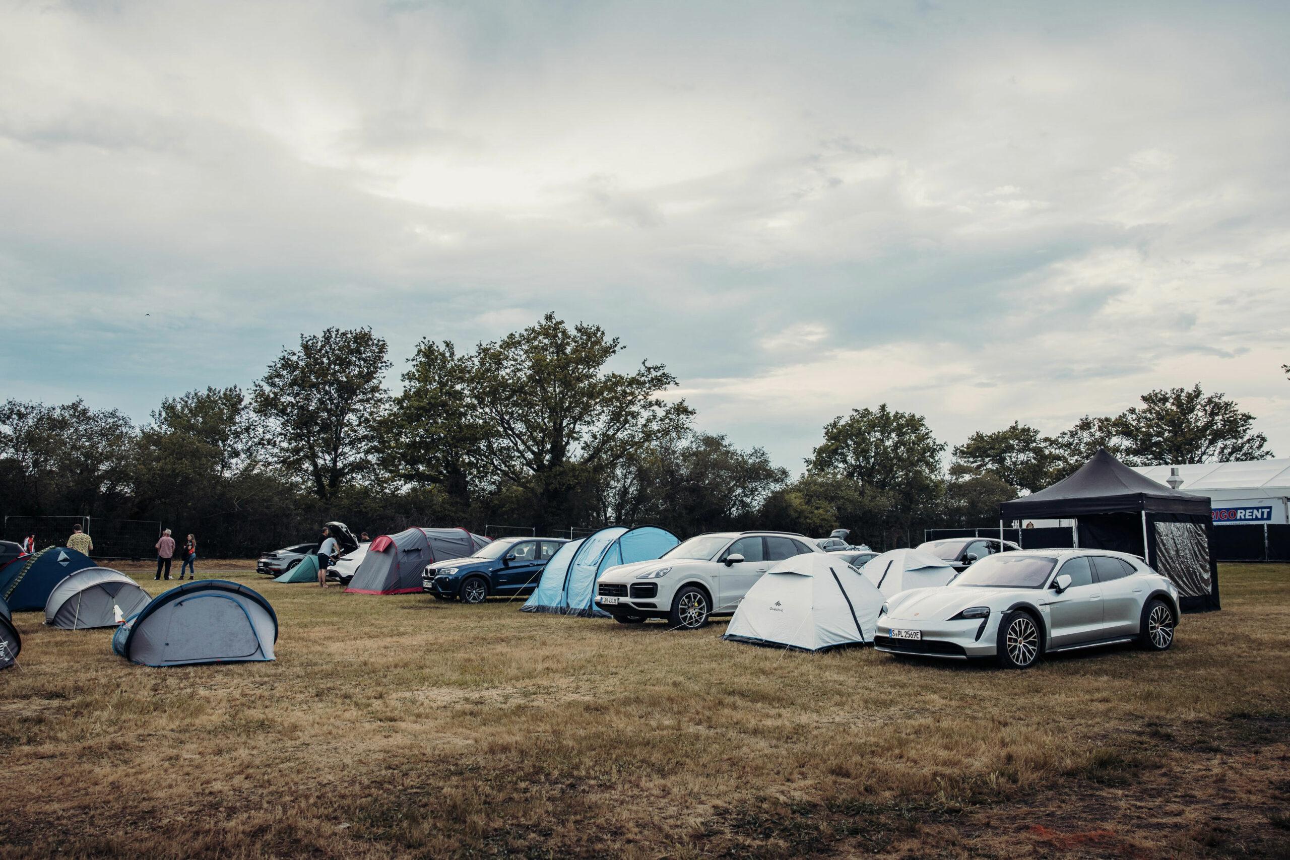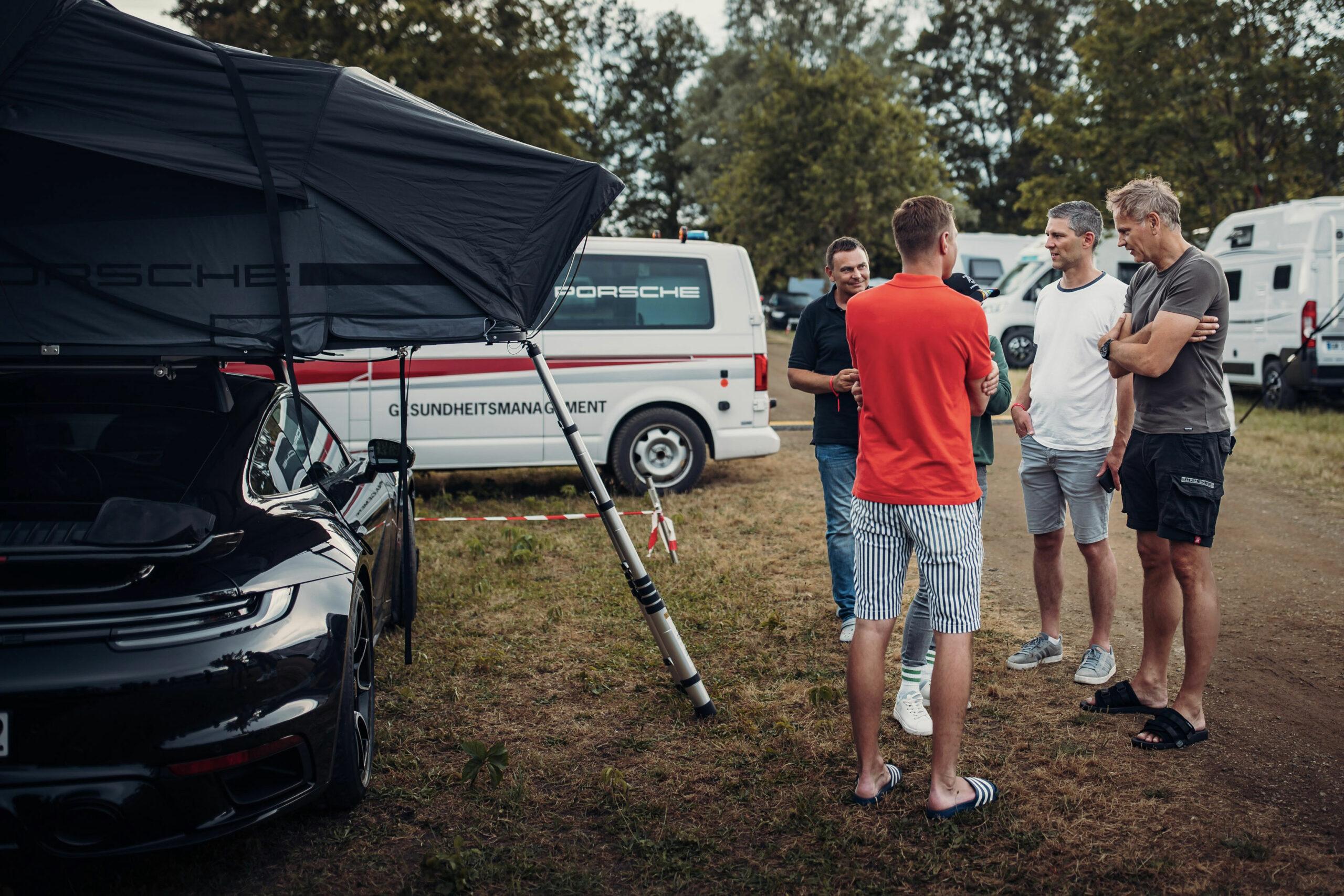 Am Donnerstag vor dem Rennen konnte man in Baden-Württemberg auf den Straßen in Richtung Westen alle möglichen Camper, Wohnmobile und auch verschiedene Porsche-Modelle antreffen – von Cayman und 911 bis hin zum vollelektrischen Taycan Sport Turismo. Im Laufe der nächsten zwei Tage füllte sich das Mitarbeitercamp stetig. In einer Ecke des Zeltplatzes war ein schwarzer 911 Turbo S geparkt, der eigentlich nur durch sein passendes schwarzes Dachzelt auffiel – in eben diesem nächtigte der 55jährige Oliver Blume zusammen mit seiner Frau. Zwei Tage blieb Blume auf dem Campingplatz und drückte dem Team Porsche Penske Motorsport die Daumen.