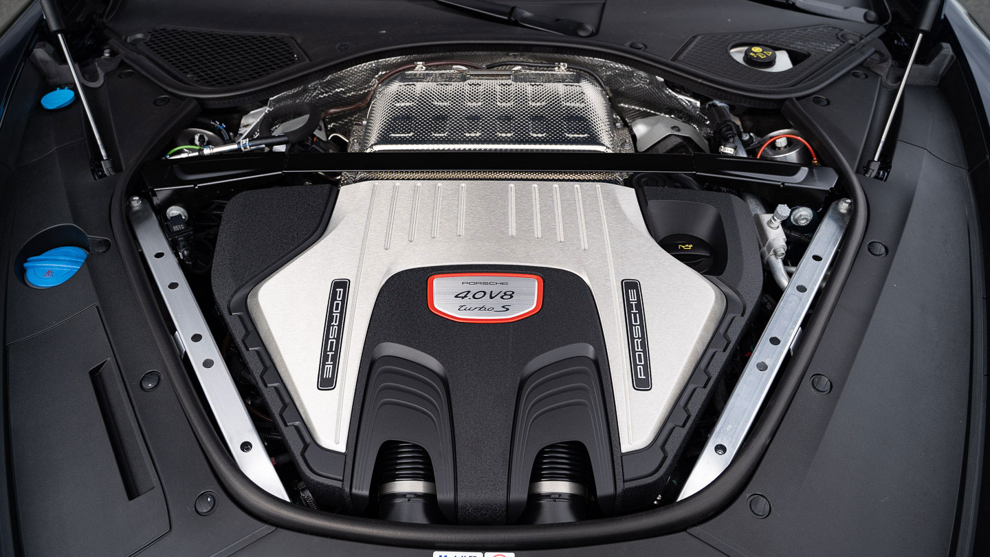 {1}Im Sprint vergehen gerade 3,1 Sekunden bis zur 100er-Marke, ausgefahren sind 315km/h möglich. Es ist dabei vor allem die Charakteristik des Porsche Panamera Turbo S, die beeindruckt. Bei Vollgas wandelt er sich vom lautlosen Gleiter in den bitterbösen Fighter. Seine neue, asymmetrische Auspuffanlage kitzelt trotz Partikelfilter ein mächtiges Geräusch aus den Brennräumen – aber eben nur bei Bedarf.