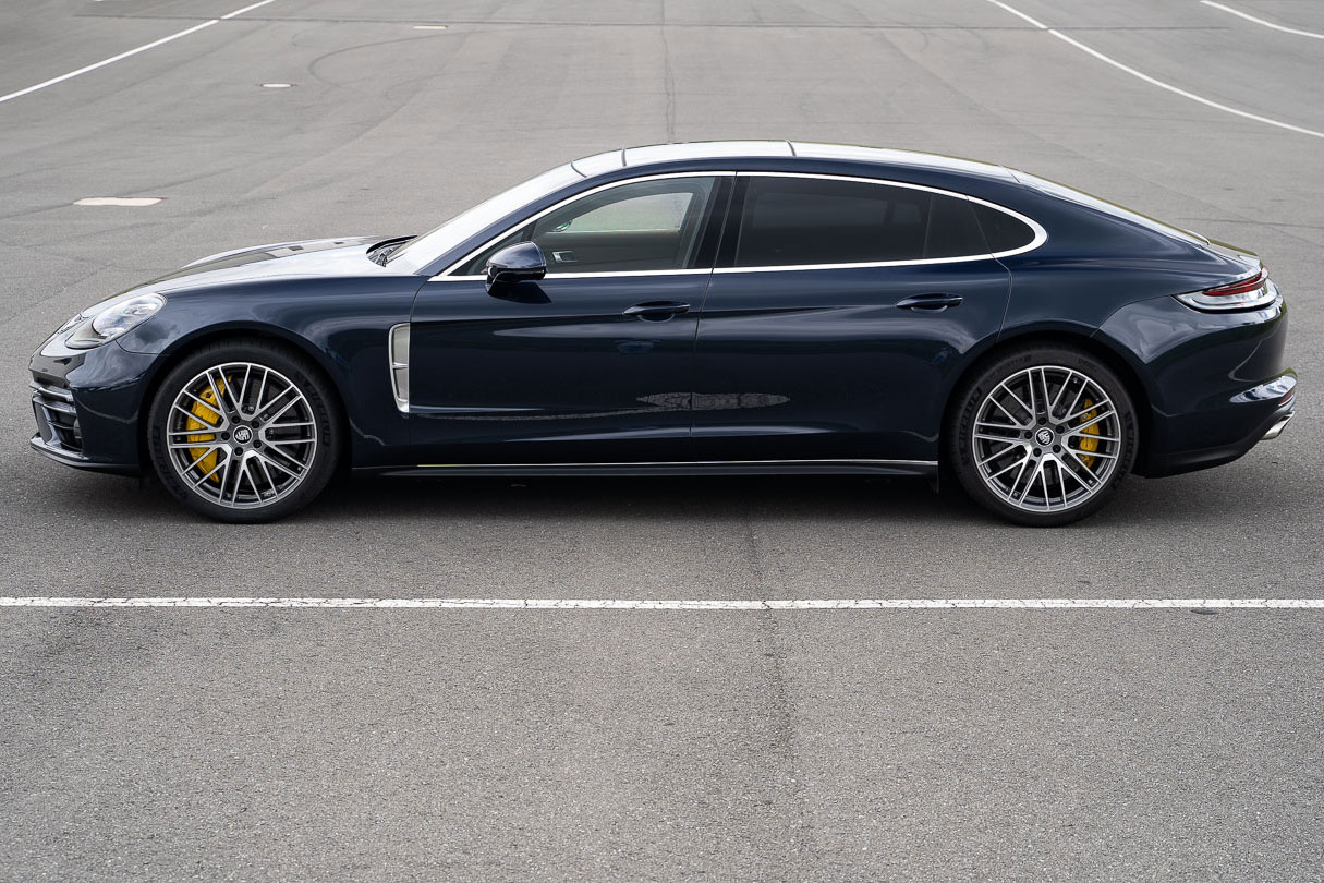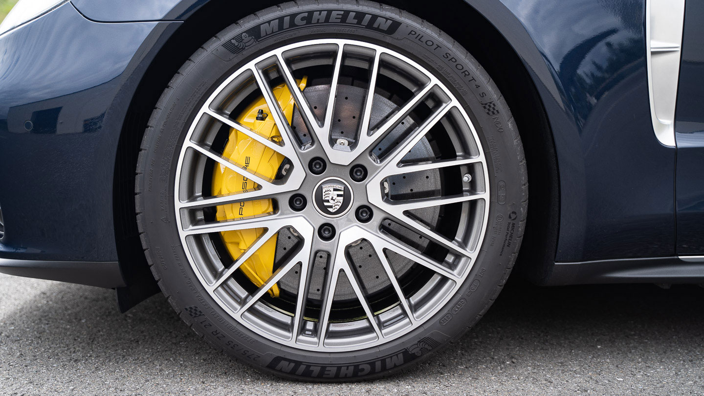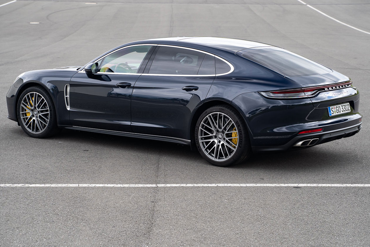Schon in den ersten Kurven kann man die Performance kaum glauben. Alle Fahrwerkssysteme, ob die Adaptivdämpfung, die Wankkontrolle oder die Hinterachslenkung, arbeiten in unglaublicher Perfektion. Vor allem lassen sie den großen Porsche Panamera gefühlt auf Golf GTI-Niveau schrumpfen. Dazu kommen die Bremsen, die in bester Porsche-Manier nie zu bezwingen sind und kein Problem mit dem mächtigen Gewicht haben.