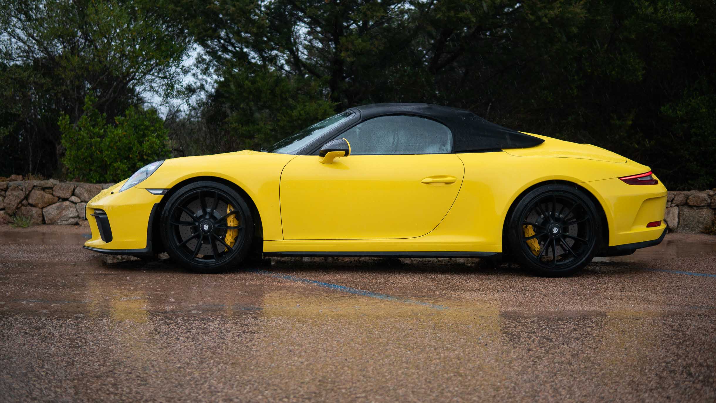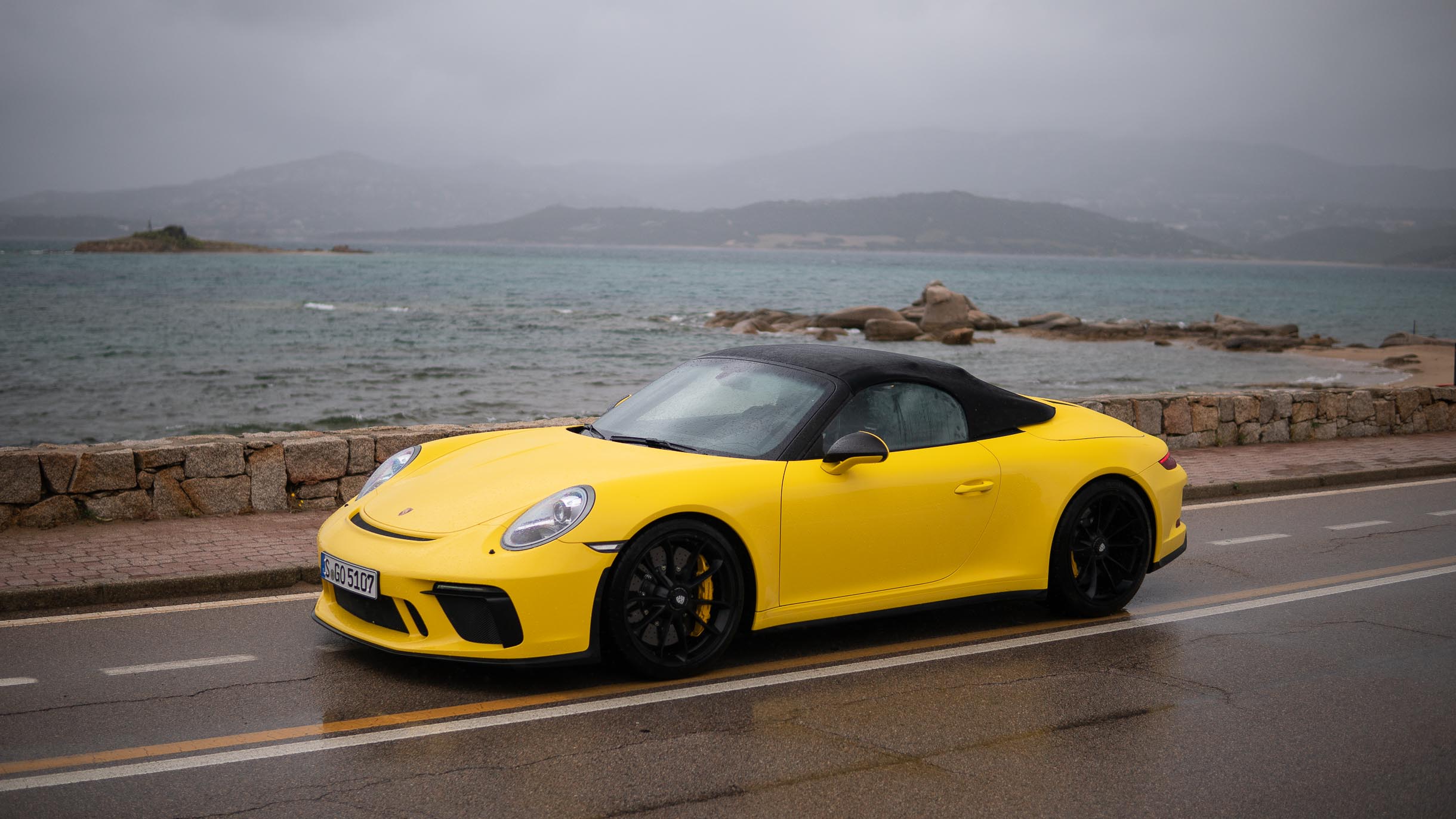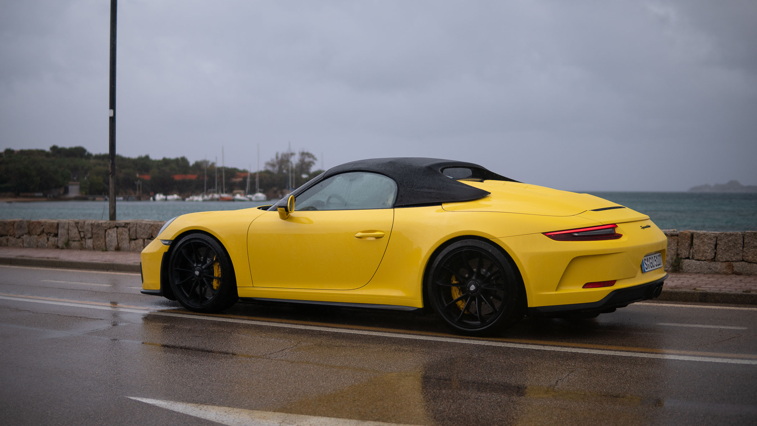 Der Porsche 911 Speedster ist im Fahrwerk eine 1:1 Kopie des 911 GT3, mithin also eine der fähigsten Zeitenfeilen, die es je gegeben hat. Ein Auto ohne jeden Humor. Ein Werkzeug einzig dafür gebaut der Schnellste zu sein. Doch was bleibt davon, wenn das Dach abgeschnitten und die Scheibe tiefergelegt wird?