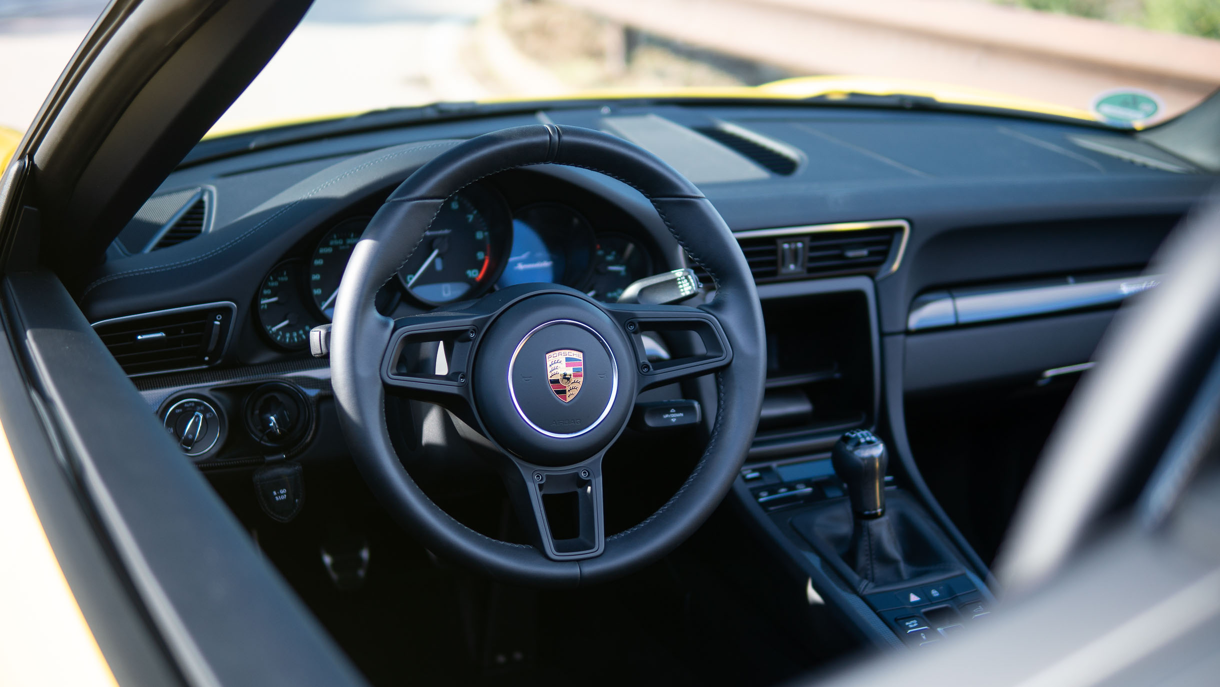 Wenn Du tapfer draufbleibst, bis 9000 Umdrehungen, dann den nächsten Gang einwirfst – meist wird es der Dritte sein, alles andere ist auf der Landstraße einfach nur kriminell – wirkt der offenste aller 911 wie aus einer anderen Welt. Wer den GT3 kennt, dem wird das Gefühl wohlig vertraut sein. Der wird die Präzision und die Mächtigkeit des Erlebnisses kennen.