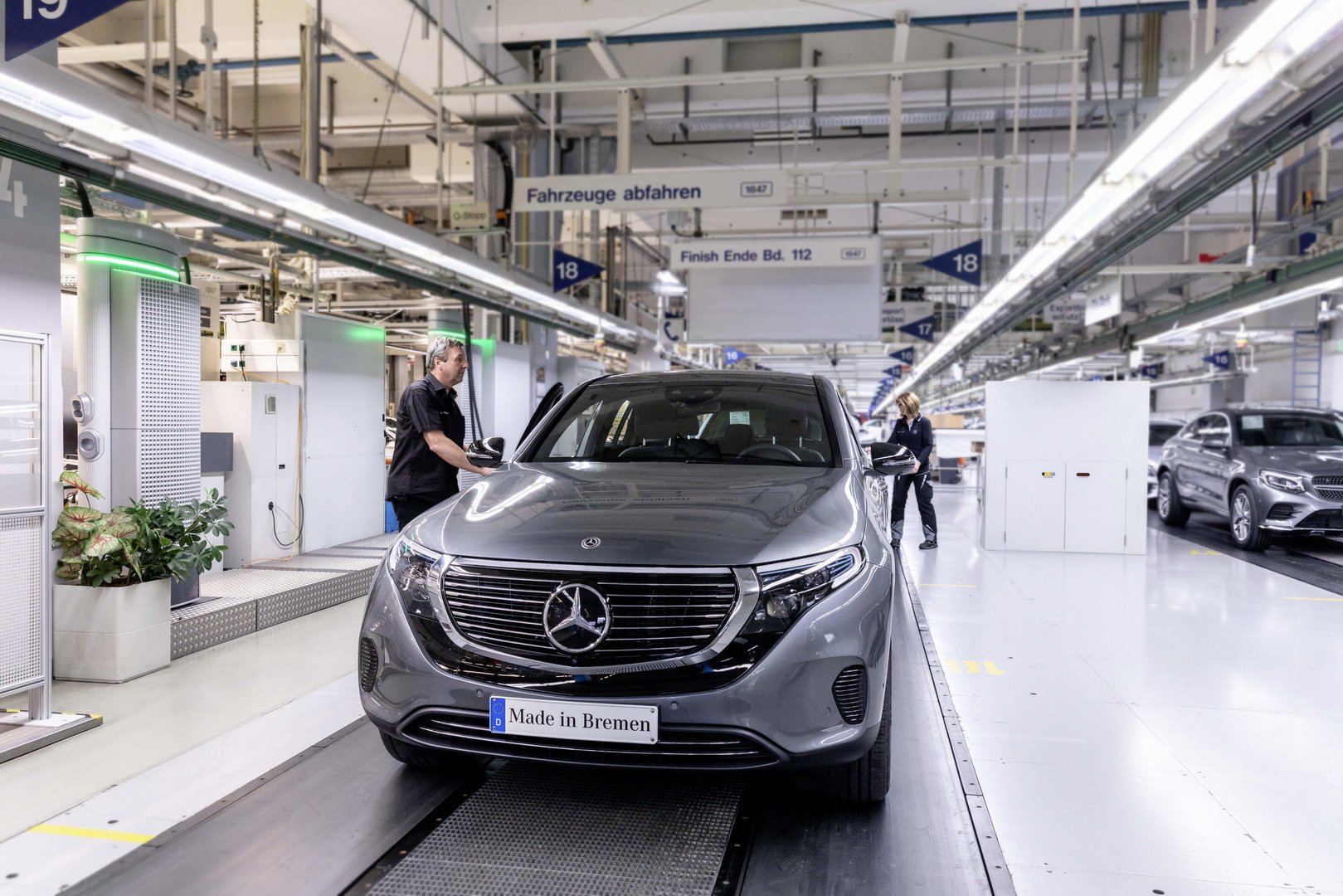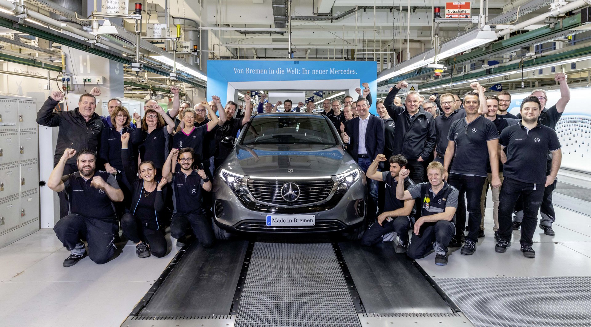 Die Produktion des EQC hat heute im Mercedes-Werk in Bremen begonnen, wo er neben der C-Klasse Limousine und T-Modell sowie GLC SUV und Coupé gebaut wird.
