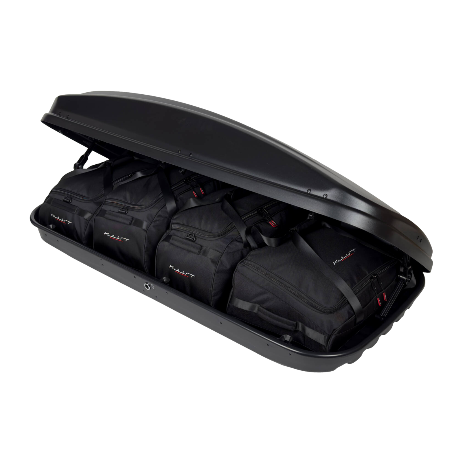 Dachboxtaschen-Sets Speziell zusammengestellte Sets für maximale Platznutzung Nutzen Sie den Platz Ihrer Dachbox maximal aus – mit dem Dachboxtaschen-Set für Ihre Dachbox. Wir haben aus 2 unterschiedlichen Taschenvarianten und verschiedenen Größen spezielle Dachboxtaschen-Sets passend für unterschiedliche Dachboxen zusammengestellt – für optimale Platznutzung und sichere Fahrt. Maximale Ordnung Dank der durchdachten Zusammenstellung der maßgeschneiderten Dachboxtaschen können Sie Ihre Dachbox einfach be- und entpacken und schaffen perfekte Ordnung. Die Taschen sind so gestaltet, dass Sie sie auch in der Dachbox einfach per Zipper öffnen können. Durchdachte Material- und Detailgestaltung Die strapazierfähigen KJUST Dachboxtaschen sind aus abriebfestem Polyamid mit spezieller Polyurethan-Beschichtung gestaltet. Sie sind feuchtigkeitsabweisend, hitze- und kältebeständig und leicht zu reinigen. Antirutsch-Elemente verhindern ein Hin- und Herrutschen beim Transport in der Dachbox. Die KJUST Dachboxtaschen überzeugen mit ihrem geringen Eigengewicht. Sie sind extrem leicht und lassen sich gut tragen. Die Reißverschlussgestaltung ermöglicht ein einfaches Be- und Entpacken der Taschen. Stabilität während der Fahrt Dank der Passgenauigkeit der Taschensets wird der Innenraum der Dachbox maximal ausgefüllt und unschönes Hin- und Herrutschen der Dachboxtaschen vermieden. Das Gepäck bleibt auch bei plötzlichen Lenkbewegungen zuverlässig an seinem Ort. Auch individuell zusammenstellbar Die Taschensets passen nicht zu Ihrer Dachbox? Stellen Sie sich einfach Ihr individuelles Set aus Basistaschen und der passenden Fronttasche zusammen.