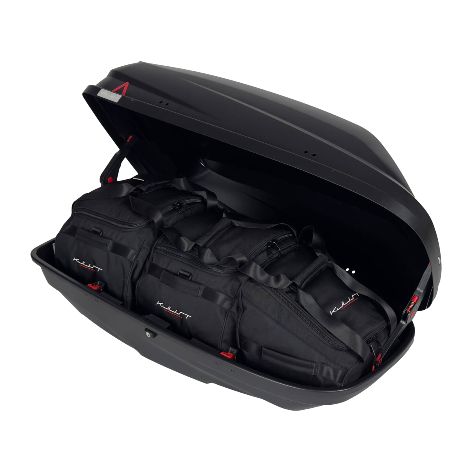 Dachboxtaschen-SetsSpeziell zusammengestellte Sets für maximale Platznutzung Nutzen Sie den Platz Ihrer Dachbox maximal aus – mit dem Dachboxtaschen-Set für Ihre Dachbox. Wir haben aus 2 unterschiedlichen Taschenvarianten und verschiedenen Größen spezielle Dachboxtaschen-Sets passend für unterschiedliche Dachboxen zusammengestellt – für optimale Platznutzung und sichere Fahrt.Maximale Ordnung Dank der durchdachten Zusammenstellung der maßgeschneiderten Dachboxtaschen können Sie Ihre Dachbox einfach be- und entpacken und schaffen perfekte Ordnung. Die Taschen sind so gestaltet, dass Sie sie auch in der Dachbox einfach per Zipper öffnen können. Durchdachte Material- und DetailgestaltungDie strapazierfähigen KJUST Dachboxtaschen sind aus abriebfestem Polyamid mit spezieller Polyurethan-Beschichtung gestaltet. Sie sind feuchtigkeitsabweisend, hitze- und kältebeständig und leicht zu reinigen. Antirutsch-Elemente verhindern ein Hin- und Herrutschen beim Transport in der Dachbox. Die KJUST Dachboxtaschen überzeugen mit ihrem geringen Eigengewicht. Sie sind extrem leicht und lassen sich gut tragen. Die Reißverschlussgestaltung ermöglicht ein einfaches Be- und Entpacken der Taschen. Stabilität während der FahrtDank der Passgenauigkeit der Taschensets wird der Innenraum der Dachbox maximal ausgefüllt und unschönes Hin- und Herrutschen der Dachboxtaschen vermieden. Das Gepäck bleibt auch bei plötzlichen Lenkbewegungen zuverlässig an seinem Ort. Auch individuell zusammenstellbarDie Taschensets passen nicht zu Ihrer Dachbox? Stellen Sie sich einfach Ihr individuelles Set aus Basistaschen und der passenden Fronttasche zusammen.