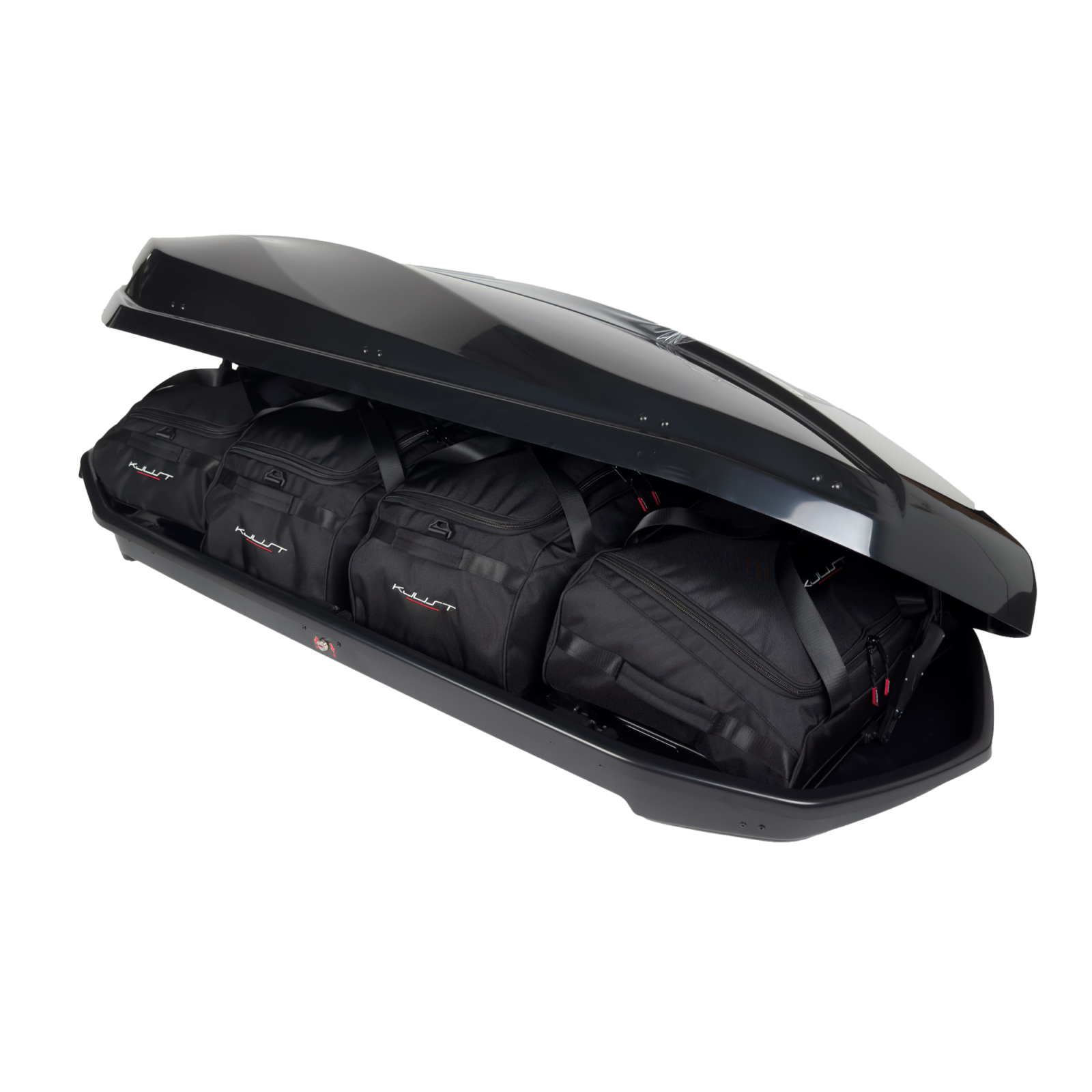 Dachboxtaschen-Sets Speziell zusammengestellte Sets für maximale Platznutzung Nutzen Sie den Platz Ihrer Dachbox maximal aus – mit dem Dachboxtaschen-Set für Ihre Dachbox. Wir haben aus 2 unterschiedlichen Taschenvarianten und verschiedenen Größen spezielle Dachboxtaschen-Sets passend für unterschiedliche Dachboxen zusammengestellt – für optimale Platznutzung und sichere Fahrt. Maximale Ordnung Dank der durchdachten Zusammenstellung der maßgeschneiderten Dachboxtaschen können Sie Ihre Dachbox einfach be- und entpacken und schaffen perfekte Ordnung. Die Taschen sind so gestaltet, dass Sie sie auch in der Dachbox einfach per Zipper öffnen können. Durchdachte Material- und Detailgestaltung Die strapazierfähigen KJUST Dachboxtaschen sind aus abriebfestem Polyamid mit spezieller Polyurethan-Beschichtung gestaltet. Sie sind feuchtigkeitsabweisend, hitze- und kältebeständig und leicht zu reinigen. Antirutsch-Elemente verhindern ein Hin- und Herrutschen beim Transport in der Dachbox. Die KJUST Dachboxtaschen überzeugen mit ihrem geringen Eigengewicht. Sie sind extrem leicht und lassen sich gut tragen. Die Reißverschlussgestaltung ermöglicht ein einfaches Be- und Entpacken der Taschen. Stabilität während der Fahrt Dank der Passgenauigkeit der Taschensets wird der Innenraum der Dachbox maximal ausgefüllt und unschönes Hin- und Herrutschen der Dachboxtaschen vermieden. Das Gepäck bleibt auch bei plötzlichen Lenkbewegungen zuverlässig an seinem Ort. Auch individuell zusammenstellbar Die Taschensets passen nicht zu Ihrer Dachbox? Stellen Sie sich einfach Ihr individuelles Set aus Basistaschen und der passenden Fronttasche zusammen.