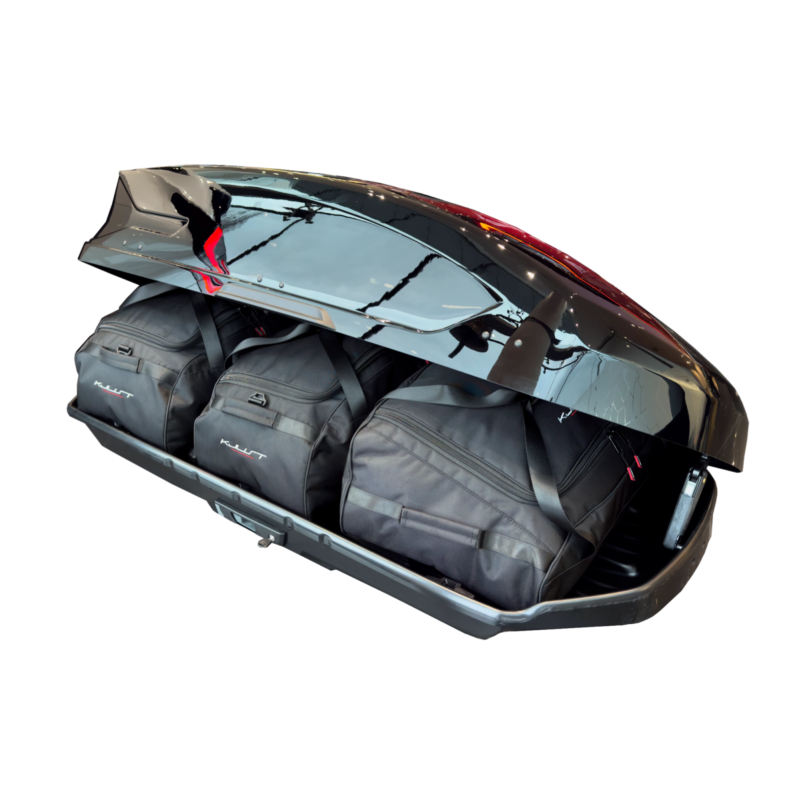 Dachboxtaschen-Sets Speziell zusammengestellte Sets für maximale Platznutzung Nutzen Sie den Platz Ihrer Dachbox maximal aus – mit dem Dachboxtaschen-Set für Ihre Dachbox. Wir haben aus 2 unterschiedlichen Taschenvarianten und verschiedenen Größen spezielle Dachboxtaschen-Sets passend für unterschiedliche Dachboxen zusammengestellt – für optimale Platznutzung und sichere Fahrt. Maximale Ordnung Dank der durchdachten Zusammenstellung der maßgeschneiderten Dachboxtaschen können Sie Ihre Dachbox einfach be- und entpacken und schaffen perfekte Ordnung. Die Taschen sind so gestaltet, dass Sie sie auch in der Dachbox einfach per Zipper öffnen können. Durchdachte Material- und Detailgestaltung Die strapazierfähigen KJUST Dachboxtaschen sind aus abriebfestem Polyamid mit spezieller Polyurethan-Beschichtung gestaltet. Sie sind feuchtigkeitsabweisend, hitze- und kältebeständig und leicht zu reinigen. Antirutsch-Elemente verhindern ein Hin- und Herrutschen beim Transport in der Dachbox. Die KJUST Dachboxtaschen überzeugen mit ihrem geringen Eigengewicht. Sie sind extrem leicht und lassen sich gut tragen. Die Reißverschlussgestaltung ermöglicht ein einfaches Be- und Entpacken der Taschen. Stabilität während der Fahrt Dank der Passgenauigkeit der Taschensets wird der Innenraum der Dachbox maximal ausgefüllt und unschönes Hin- und Herrutschen der Dachboxtaschen vermieden. Das Gepäck bleibt auch bei plötzlichen Lenkbewegungen zuverlässig an seinem Ort. Auch individuell zusammenstellbar Die Taschensets passen nicht zu Ihrer Dachbox? Stellen Sie sich einfach Ihr individuelles Set aus Basistaschen und der passenden Fronttasche zusammen.