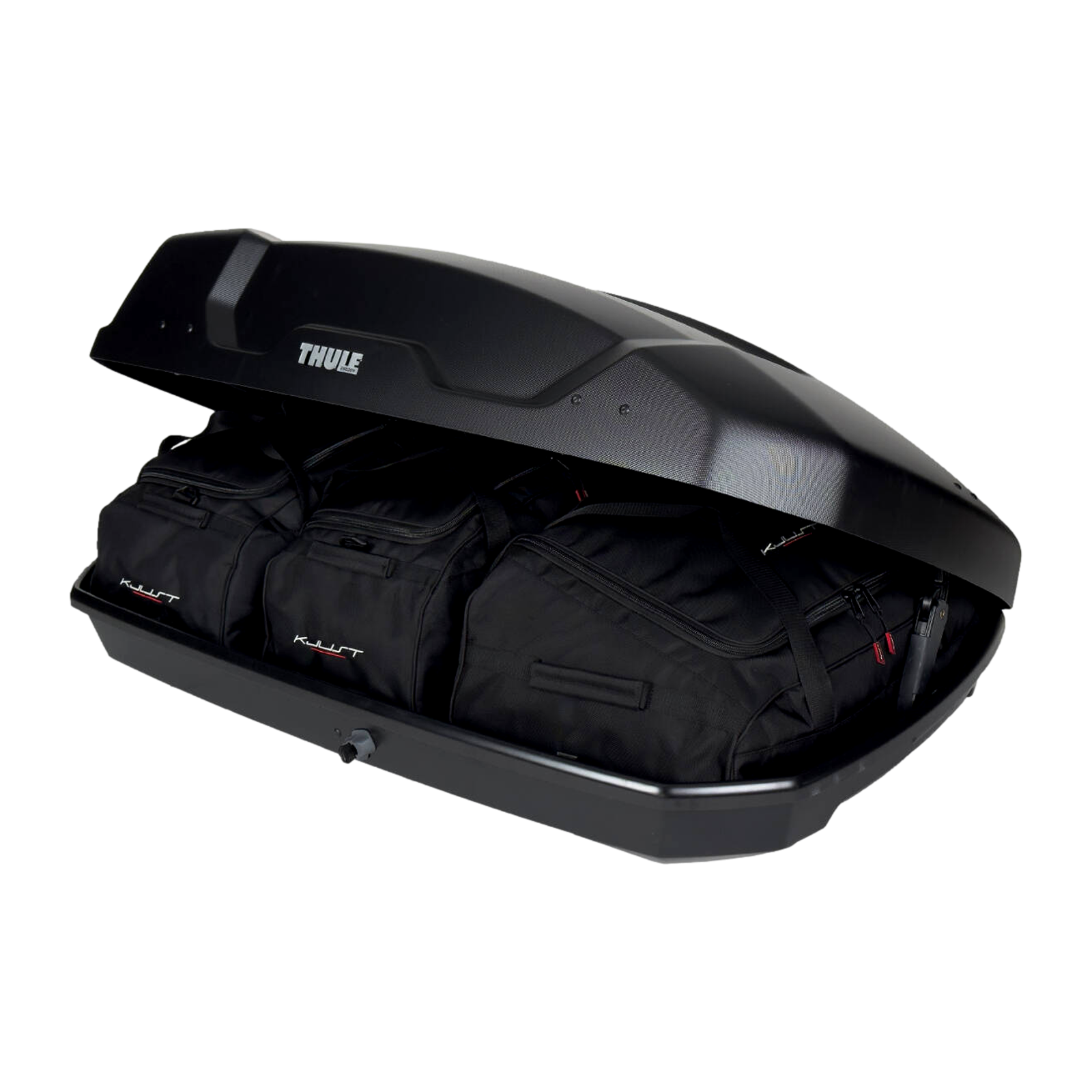 Dachboxtaschen-Sets Speziell zusammengestellte Sets für maximale Platznutzung Nutzen Sie den Platz Ihrer Dachbox maximal aus – mit dem Dachboxtaschen-Set für Ihre Dachbox. Wir haben aus 2 unterschiedlichen Taschenvarianten und verschiedenen Größen spezielle Dachboxtaschen-Sets passend für unterschiedliche Dachboxen zusammengestellt – für optimale Platznutzung und sichere Fahrt. Maximale Ordnung Dank der durchdachten Zusammenstellung der maßgeschneiderten Dachboxtaschen können Sie Ihre Dachbox einfach be- und entpacken und schaffen perfekte Ordnung. Die Taschen sind so gestaltet, dass Sie sie auch in der Dachbox einfach per Zipper öffnen können. Durchdachte Material- und Detailgestaltung Die strapazierfähigen KJUST Dachboxtaschen sind aus abriebfestem Polyamid mit spezieller Polyurethan-Beschichtung gestaltet. Sie sind feuchtigkeitsabweisend, hitze- und kältebeständig und leicht zu reinigen. Antirutsch-Elemente verhindern ein Hin- und Herrutschen beim Transport in der Dachbox. Die KJUST Dachboxtaschen überzeugen mit ihrem geringen Eigengewicht. Sie sind extrem leicht und lassen sich gut tragen. Die Reißverschlussgestaltung ermöglicht ein einfaches Be- und Entpacken der Taschen. Stabilität während der Fahrt Dank der Passgenauigkeit der Taschensets wird der Innenraum der Dachbox maximal ausgefüllt und unschönes Hin- und Herrutschen der Dachboxtaschen vermieden. Das Gepäck bleibt auch bei plötzlichen Lenkbewegungen zuverlässig an seinem Ort. Auch individuell zusammenstellbar Die Taschensets passen nicht zu Ihrer Dachbox? Stellen Sie sich einfach Ihr individuelles Set aus Basistaschen und der passenden Fronttasche zusammen.