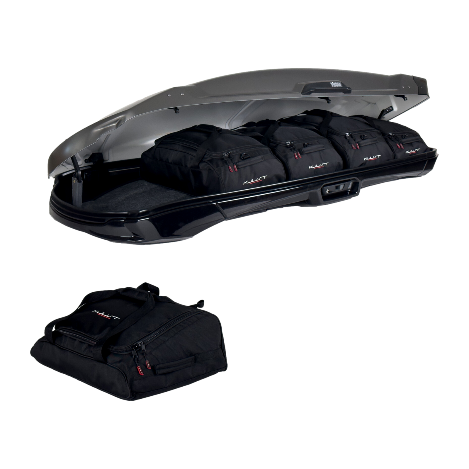 Dachboxtaschen-Sets Speziell zusammengestellte Sets für maximale Platznutzung Nutzen Sie den Platz Ihrer Dachbox maximal aus – mit dem Dachboxtaschen-Set für Ihre Dachbox. Wir haben aus 2 unterschiedlichen Taschenvarianten und verschiedenen Größen spezielle Dachboxtaschen-Sets passend für unterschiedliche Dachboxen zusammengestellt – für optimale Platznutzung und sichere Fahrt. Maximale Ordnung Dank der durchdachten Zusammenstellung der maßgeschneiderten Dachboxtaschen können Sie Ihre Dachbox einfach be- und entpacken und schaffen perfekte Ordnung. Die Taschen sind so gestaltet, dass Sie sie auch in der Dachbox einfach per Zipper öffnen können. Durchdachte Material- und Detailgestaltung Die strapazierfähigen KJUST Dachboxtaschen sind aus abriebfestem Polyamid mit spezieller Polyurethan-Beschichtung gestaltet. Sie sind feuchtigkeitsabweisend, hitze- und kältebeständig und leicht zu reinigen. Antirutsch-Elemente verhindern ein Hin- und Herrutschen beim Transport in der Dachbox. Die KJUST Dachboxtaschen überzeugen mit ihrem geringen Eigengewicht. Sie sind extrem leicht und lassen sich gut tragen. Die Reißverschlussgestaltung ermöglicht ein einfaches Be- und Entpacken der Taschen. Stabilität während der Fahrt Dank der Passgenauigkeit der Taschensets wird der Innenraum der Dachbox maximal ausgefüllt und unschönes Hin- und Herrutschen der Dachboxtaschen vermieden. Das Gepäck bleibt auch bei plötzlichen Lenkbewegungen zuverlässig an seinem Ort. Auch individuell zusammenstellbar Die Taschensets passen nicht zu Ihrer Dachbox? Stellen Sie sich einfach Ihr individuelles Set aus Basistaschen und der passenden Fronttasche zusammen.